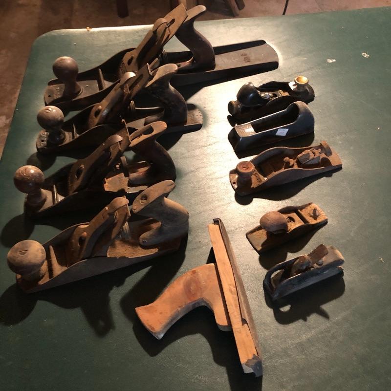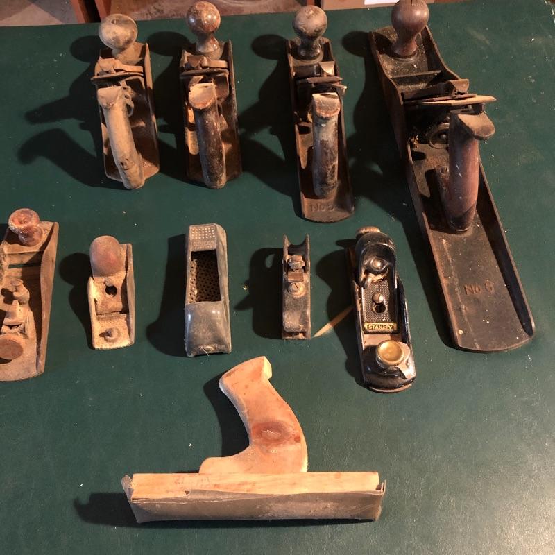 This lot contains ten items. The one wooden planer is handmade. See pictures for details. Shipping Available.