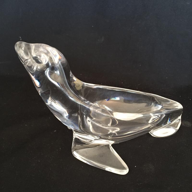 Sevres France Crystal Glass Large Seal figurine/ bowl. Cristal DArques Dolphin 24 Percent Lead Crystal Dolphin. Dolphin Measures 6.5” Tall. Both appear in excellent shape.