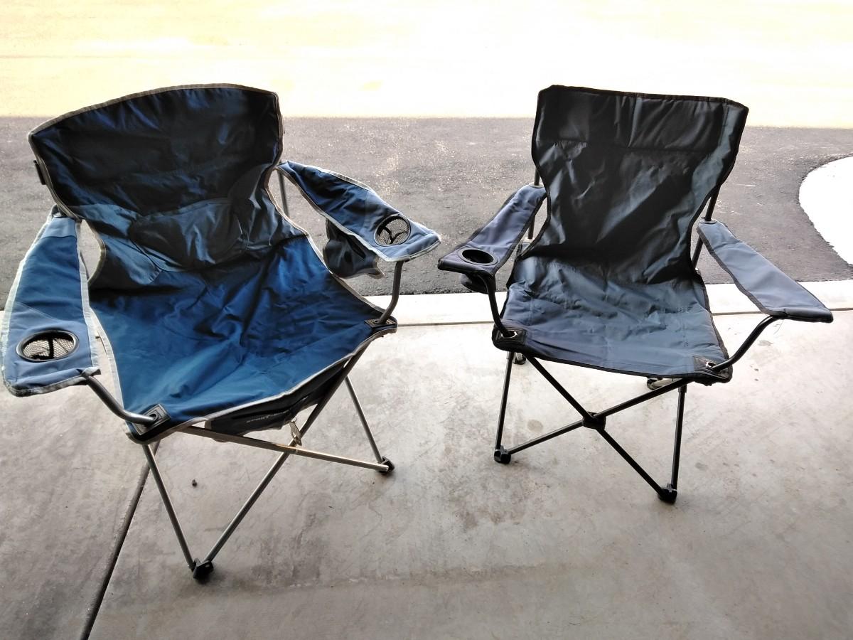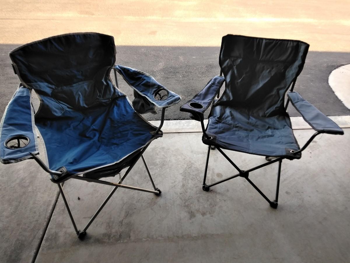 TWO FOLDING CHAIRS WITH STORAGE BAGS.