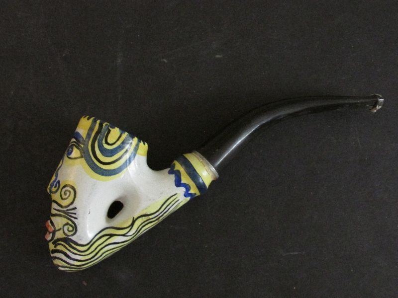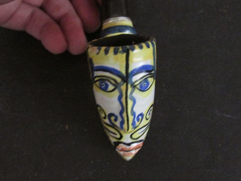 Vintage Artistic Face tobacco pipe. Slight wear to mouth piece shown in photo.
