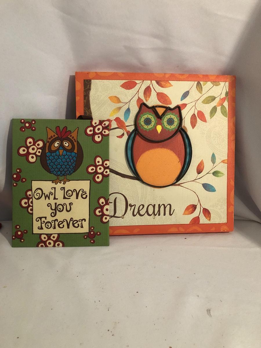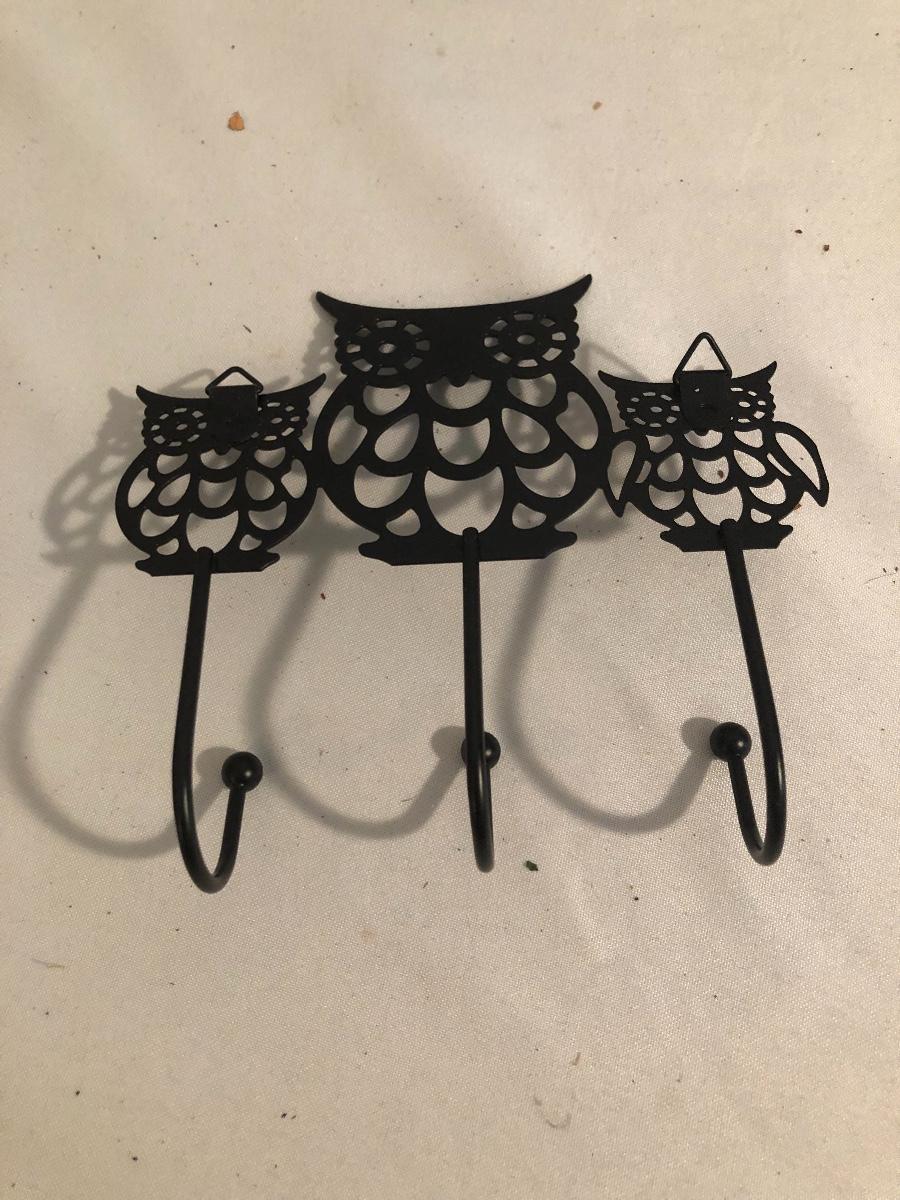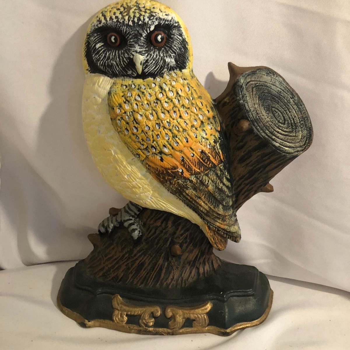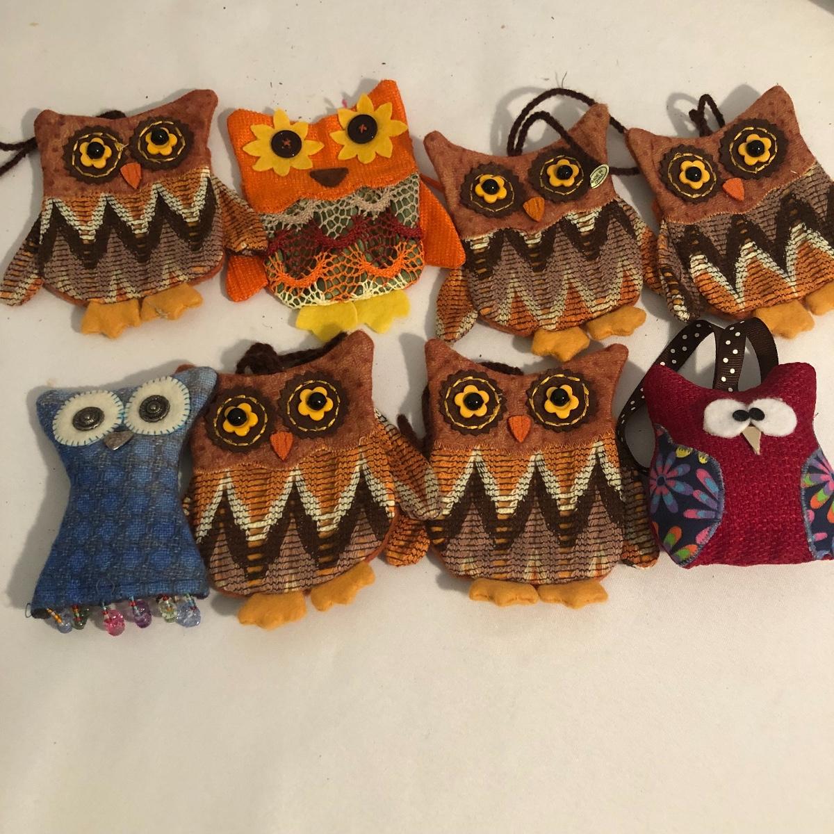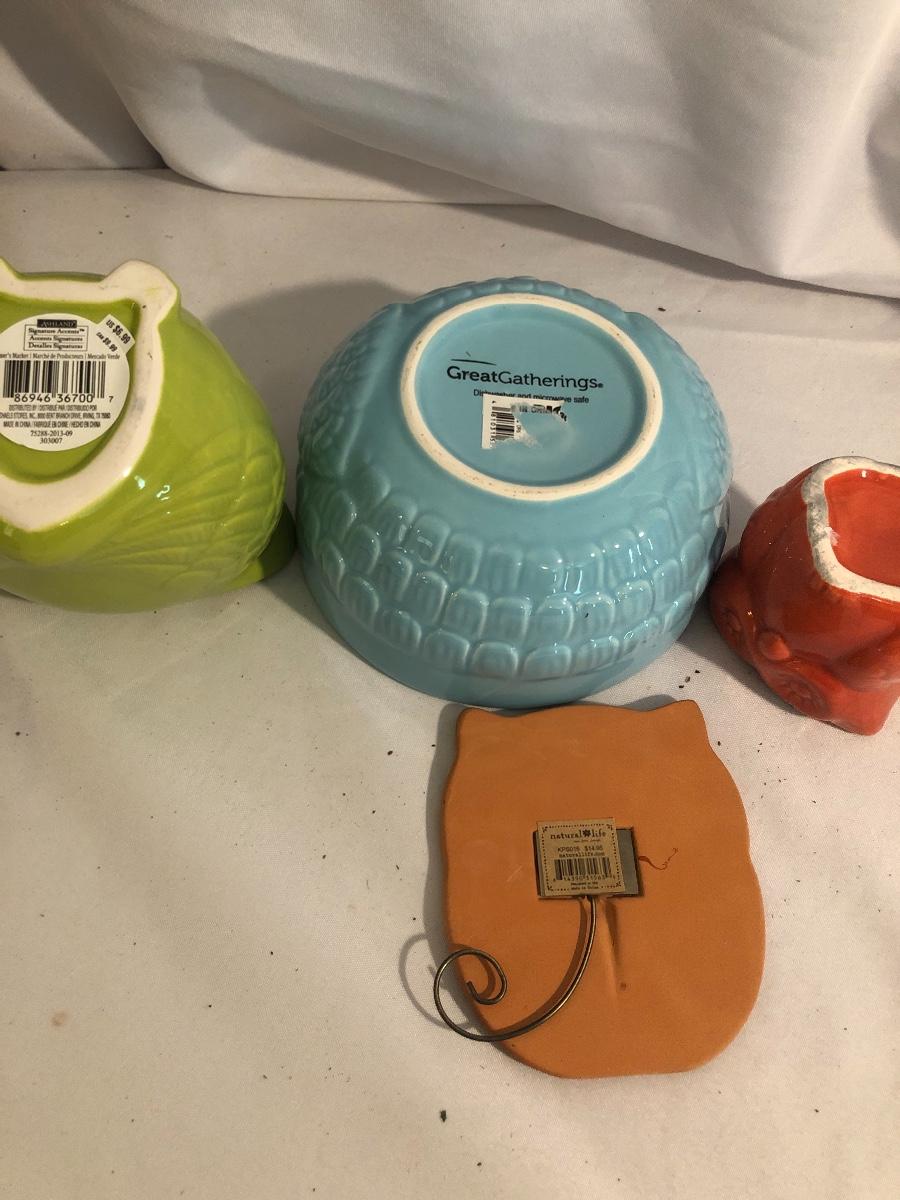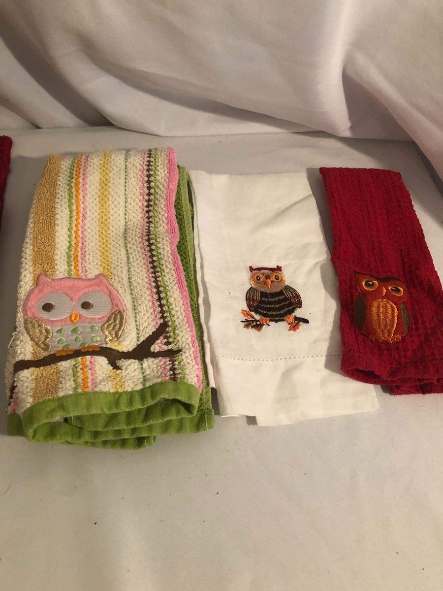 For those folks who give a hoot, is this large collection of whimsical owls. This lot includes three door mats, two pillows, heavy metal doorstop, three dish towels, hanger, bowl, artwork and more. It also includes an array of stuffed toy owls. Doorstop measures 3” x 10” x 13”.
