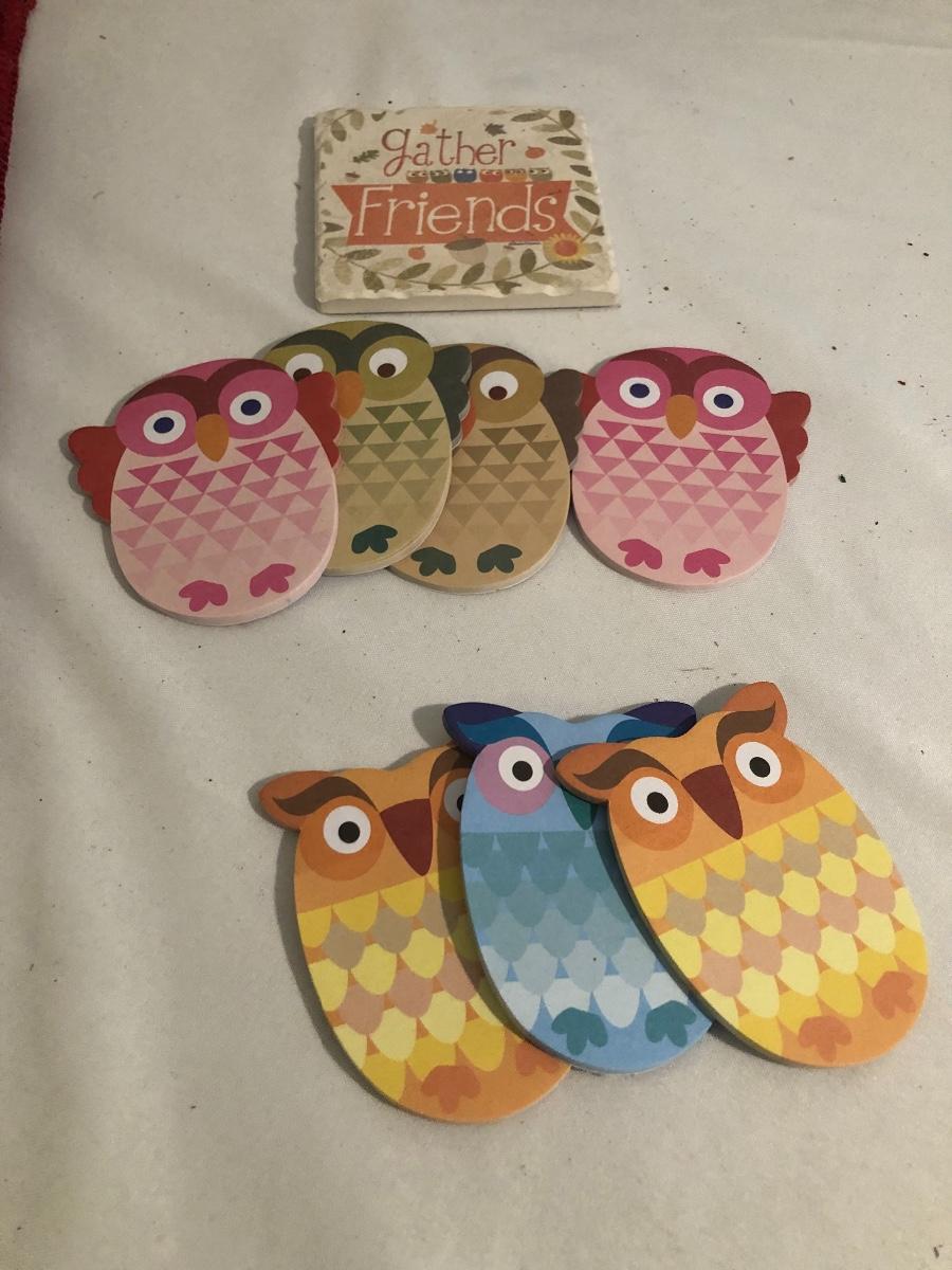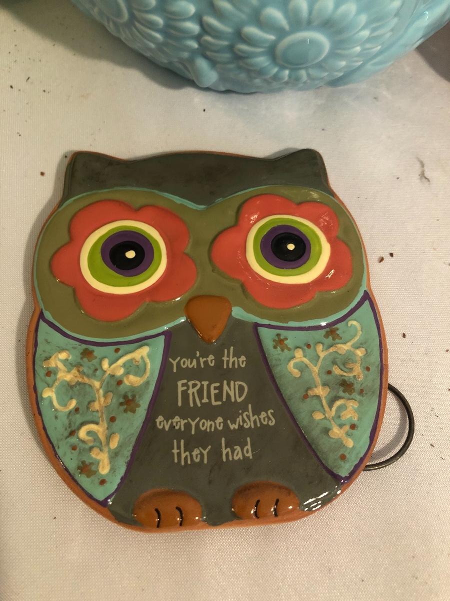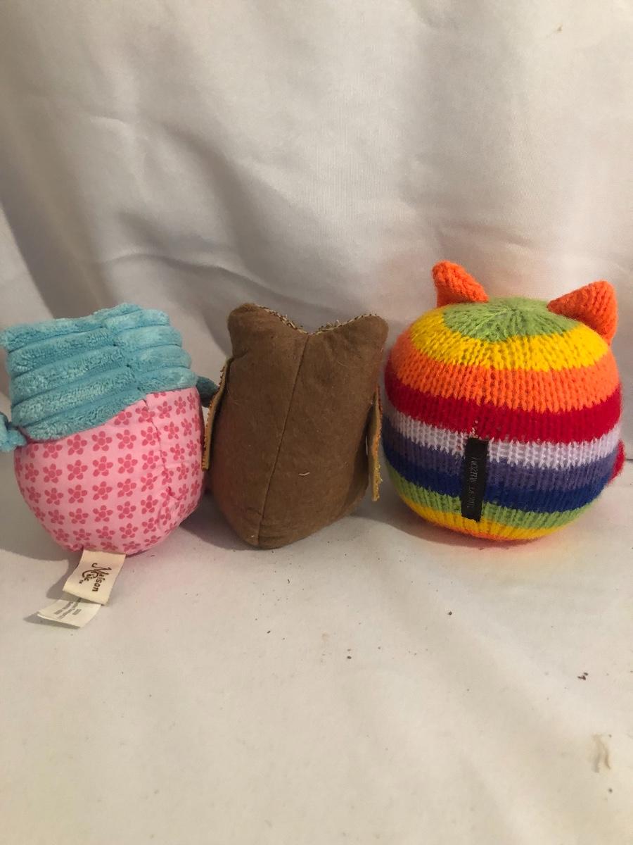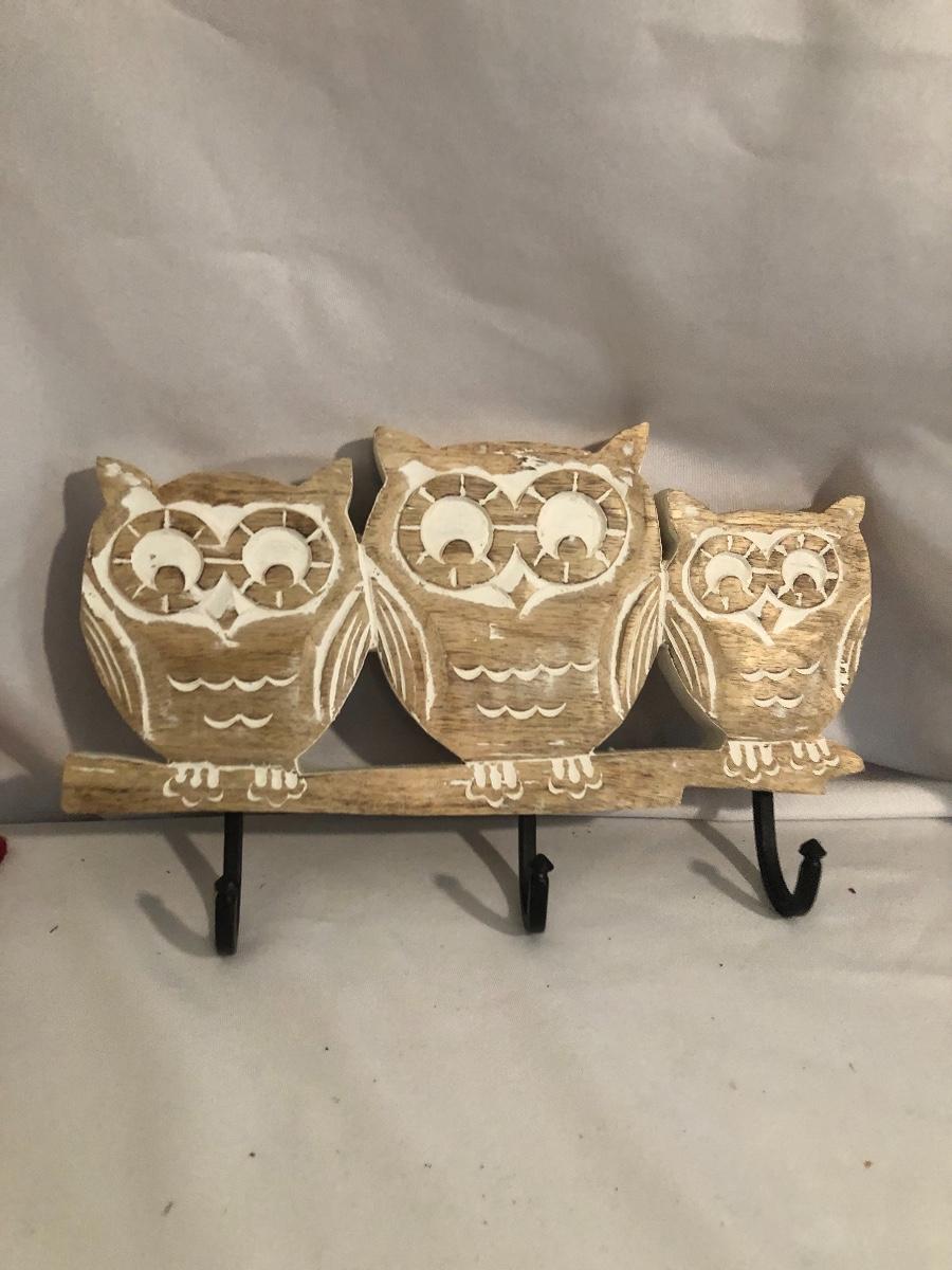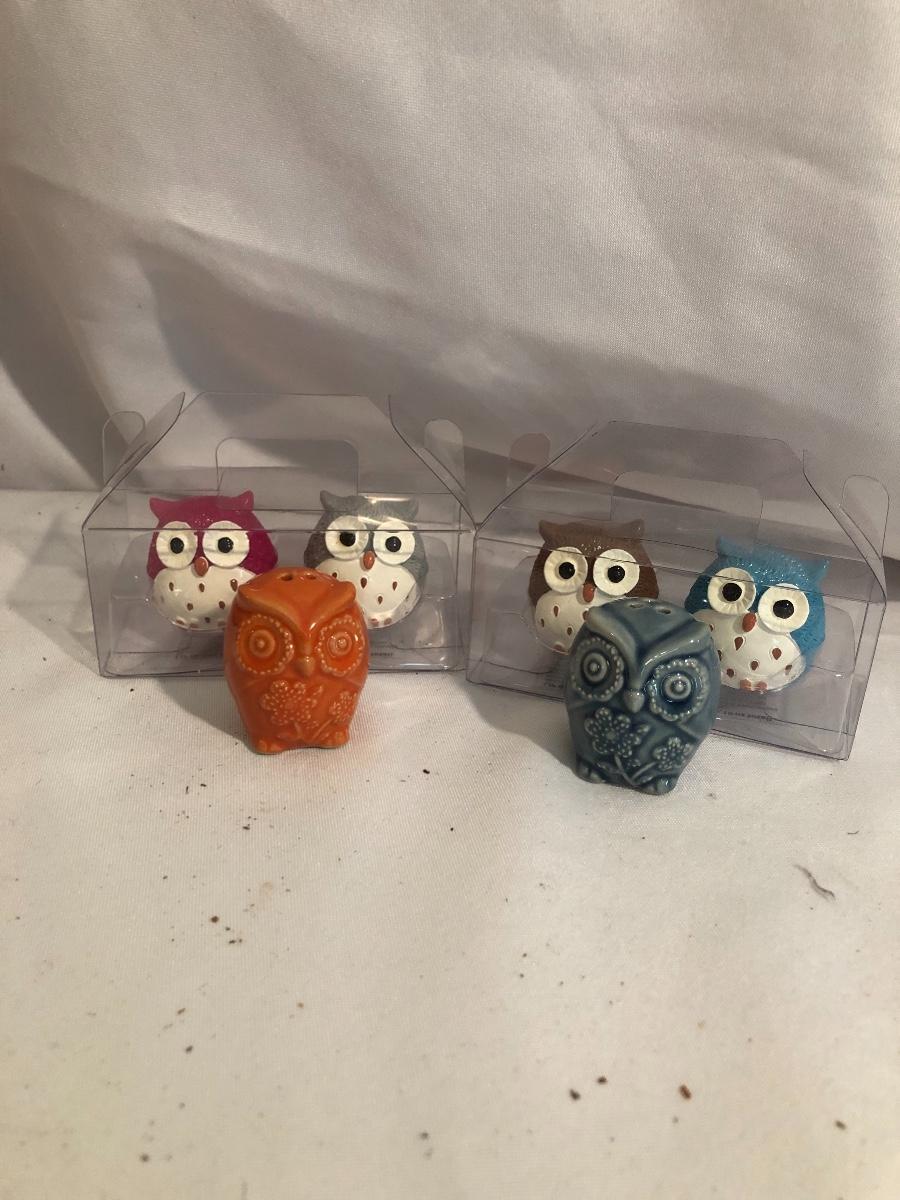 For those folks who give a hoot, is this large collection of whimsical owls. This lot includes three door mats, two pillows, heavy metal doorstop, three dish towels, hanger, bowl, artwork and more. It also includes an array of stuffed toy owls. Doorstop measures 3” x 10” x 13”.