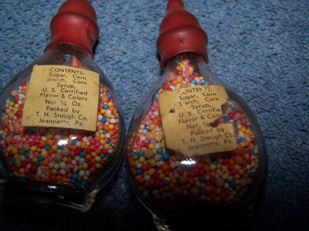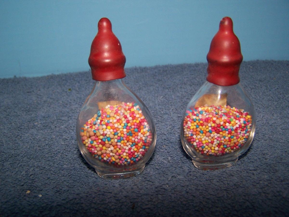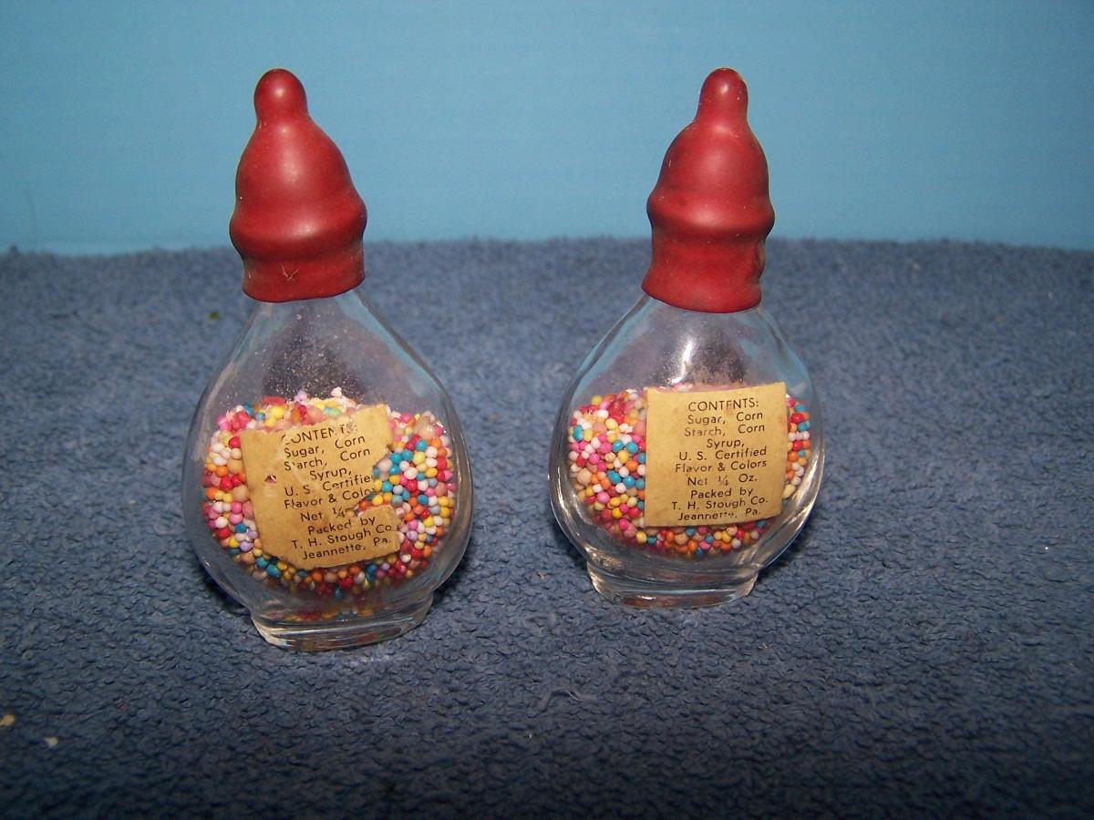 THESE ARE WONDERFUL VINTAGE MINI BABY BOTTLES CANDY CONTAINERS!!! 3 1/8'' TALL.. LIGHT WEAR..