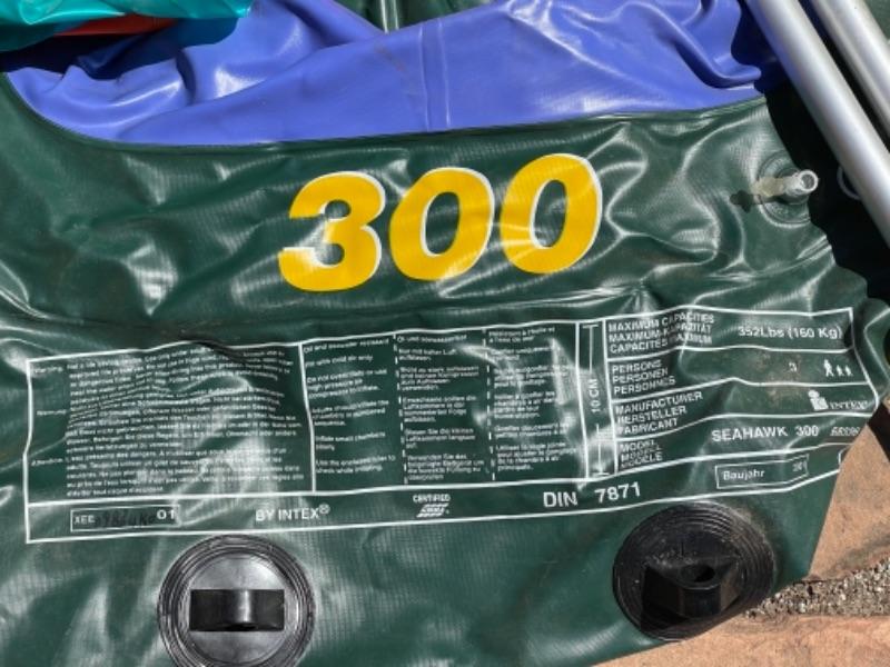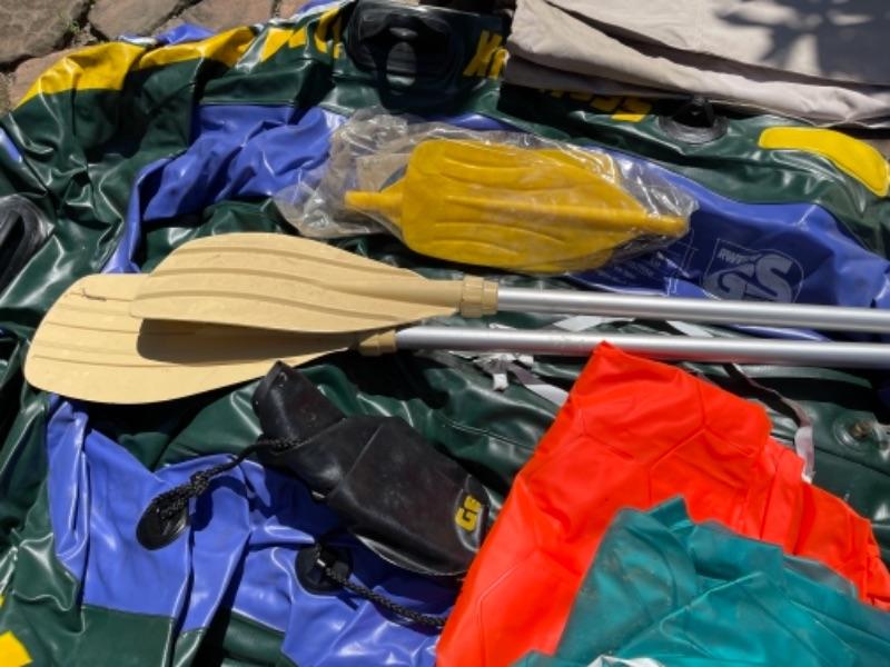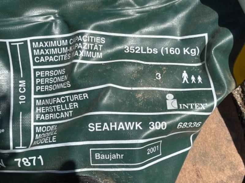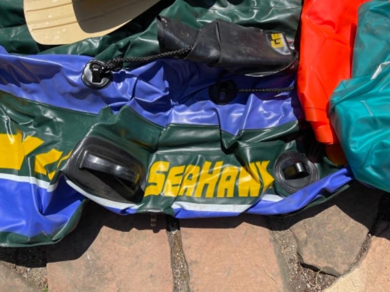 Lot 172G. Seahawk 300 inflatable raft and paddles, 2 small rafts--$125