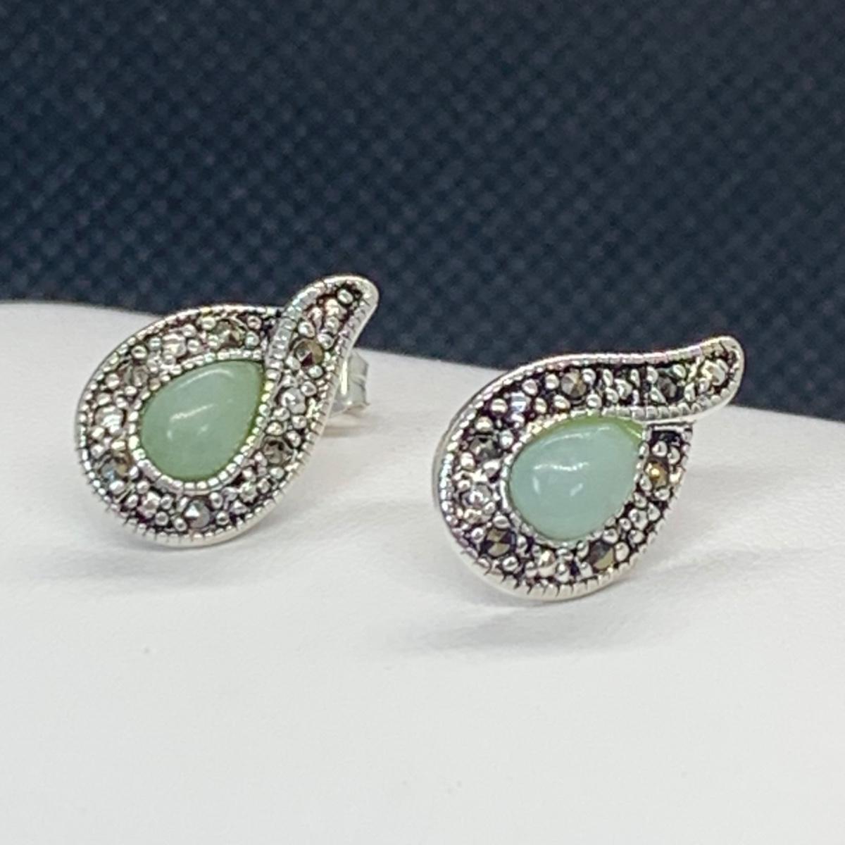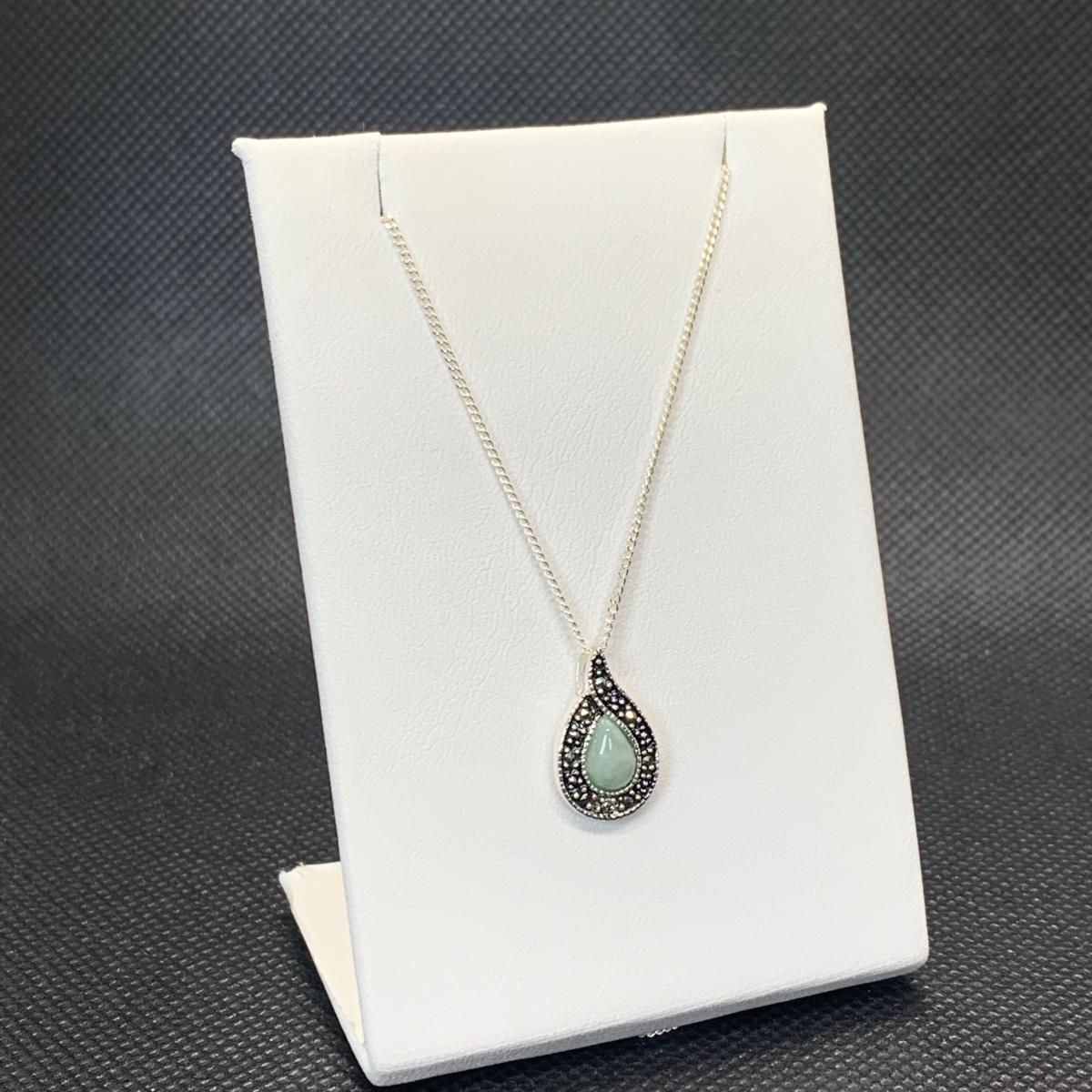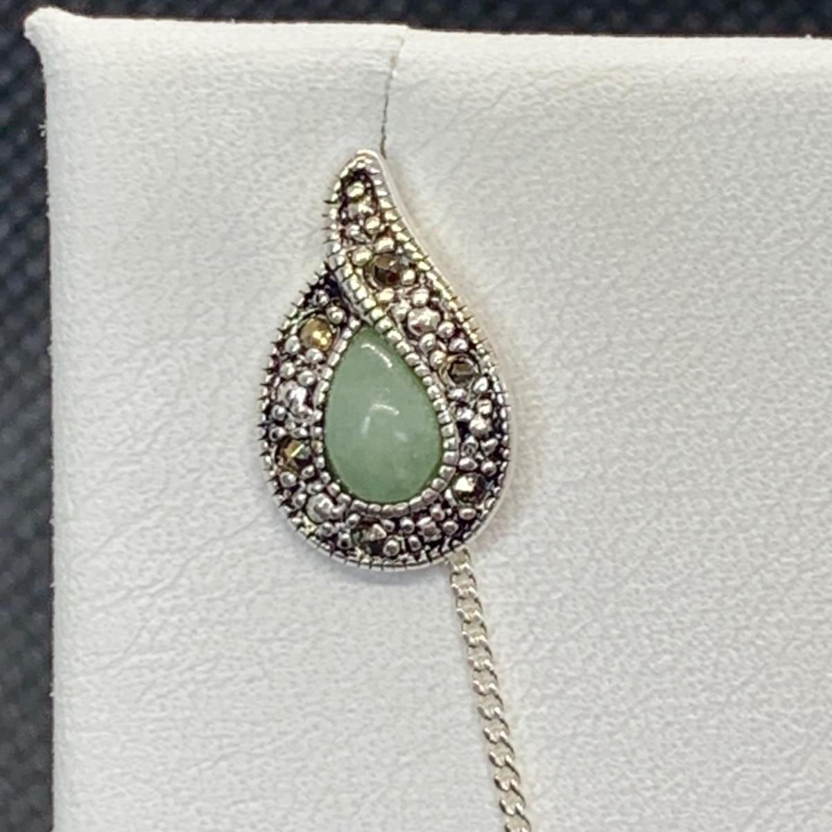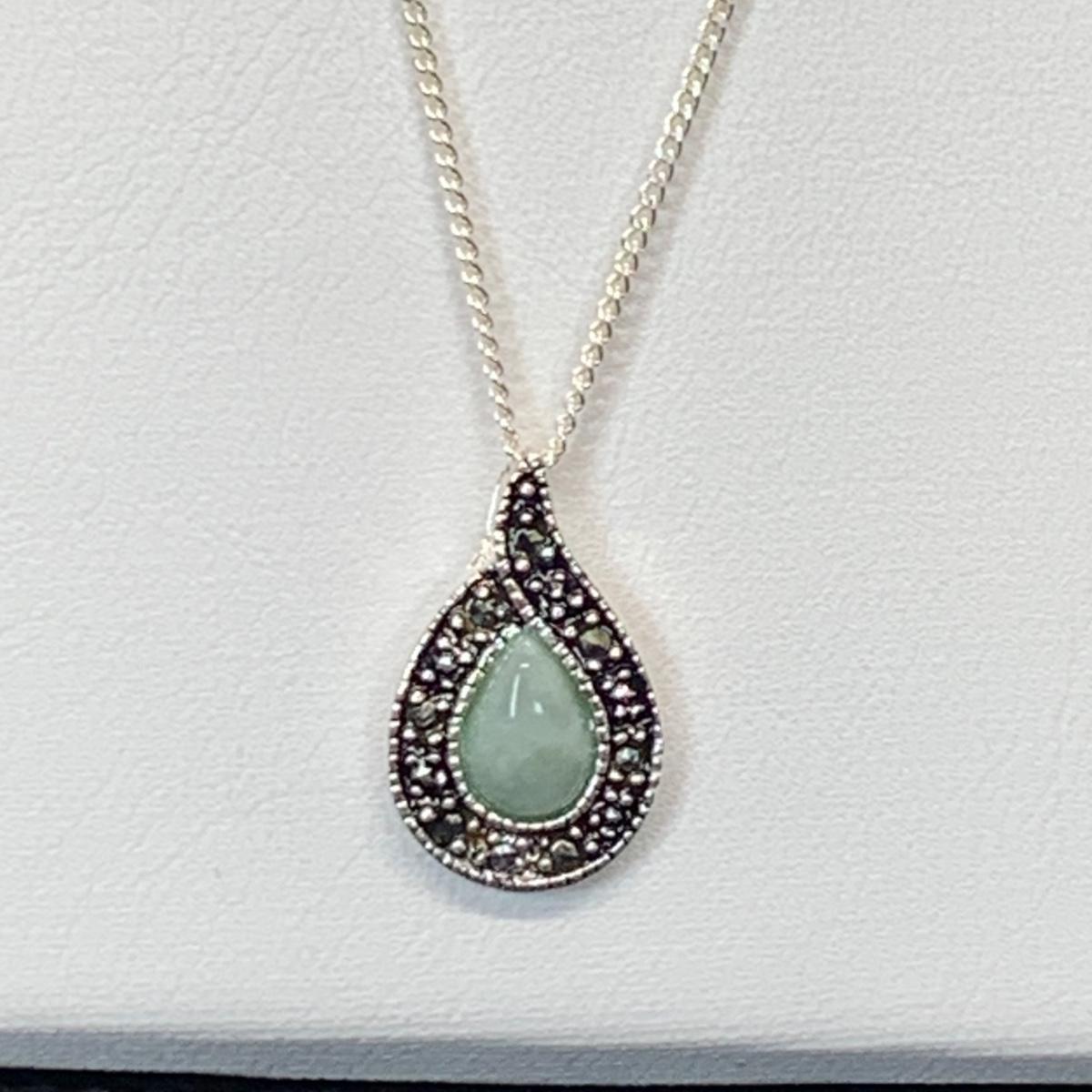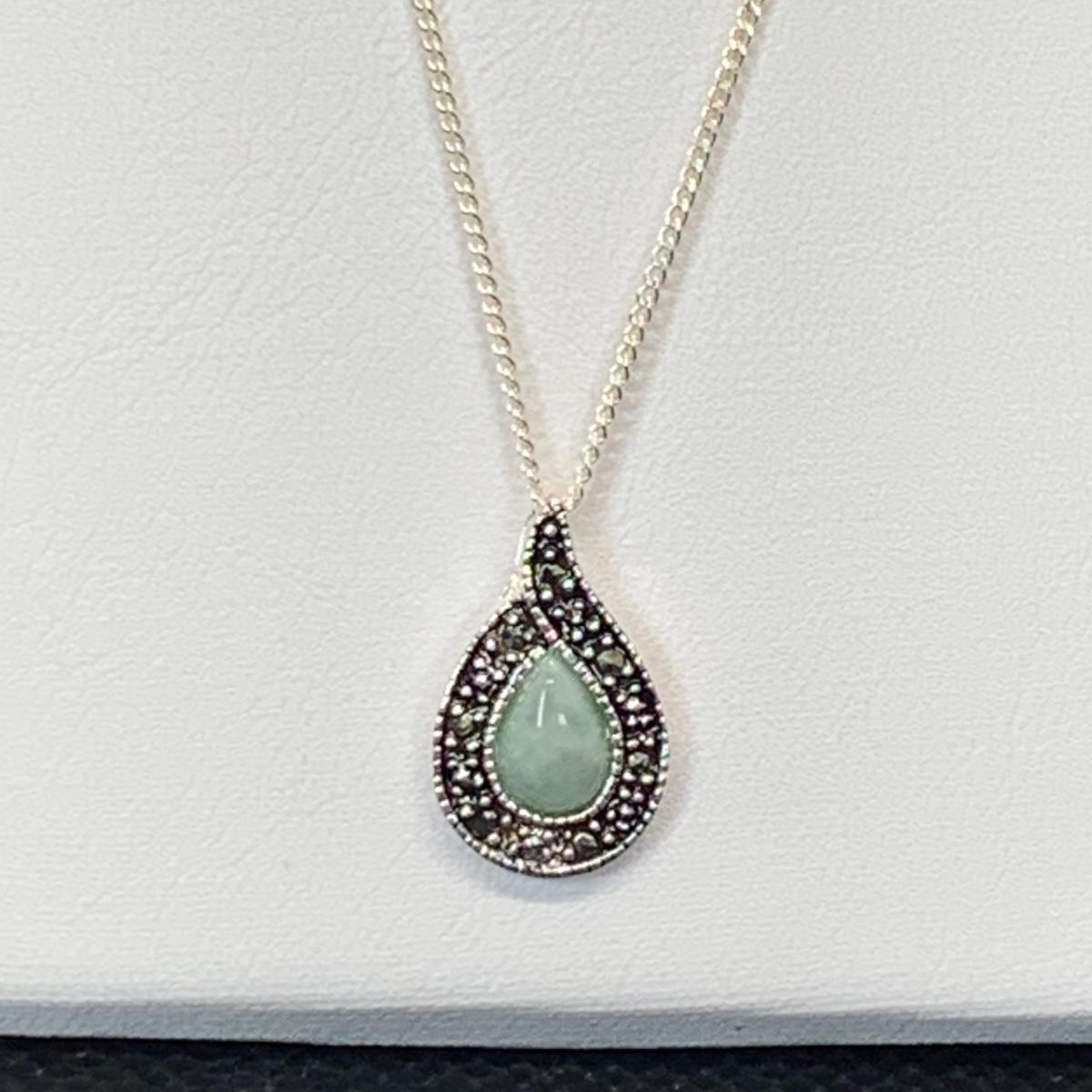 Lot 173: Nevada Sterling Silver, Jade & Marcasite Necklace 20" & Earring Set