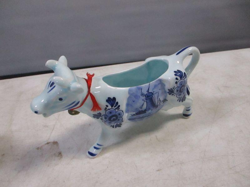 Flower design on coddlers, glass bird & silverplate pot - cow creamer windmill scene