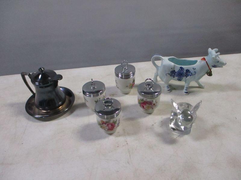 Lot 173 - Holland Cow Creamer & Royal Worcester Egg Coddlers