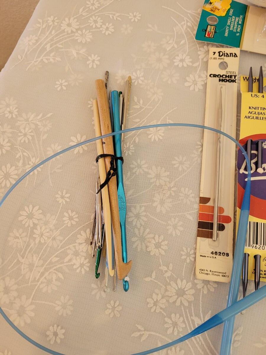 Lot 173:  Mix of Sewing, Knitting and Crocheting Implements
