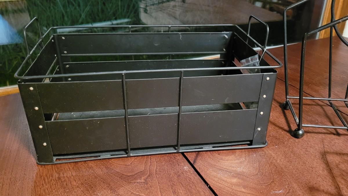 Lot 173: Black Wire Basket, Crate and Magazine Stand