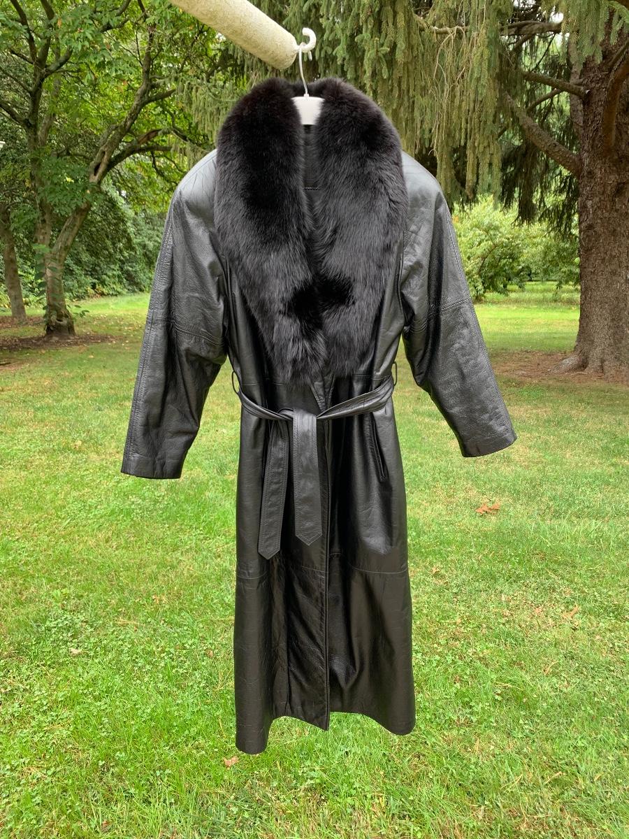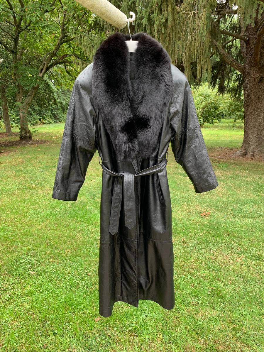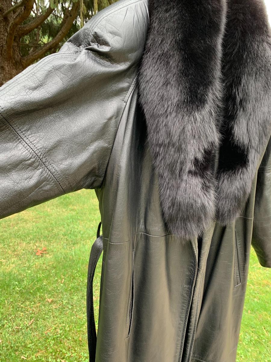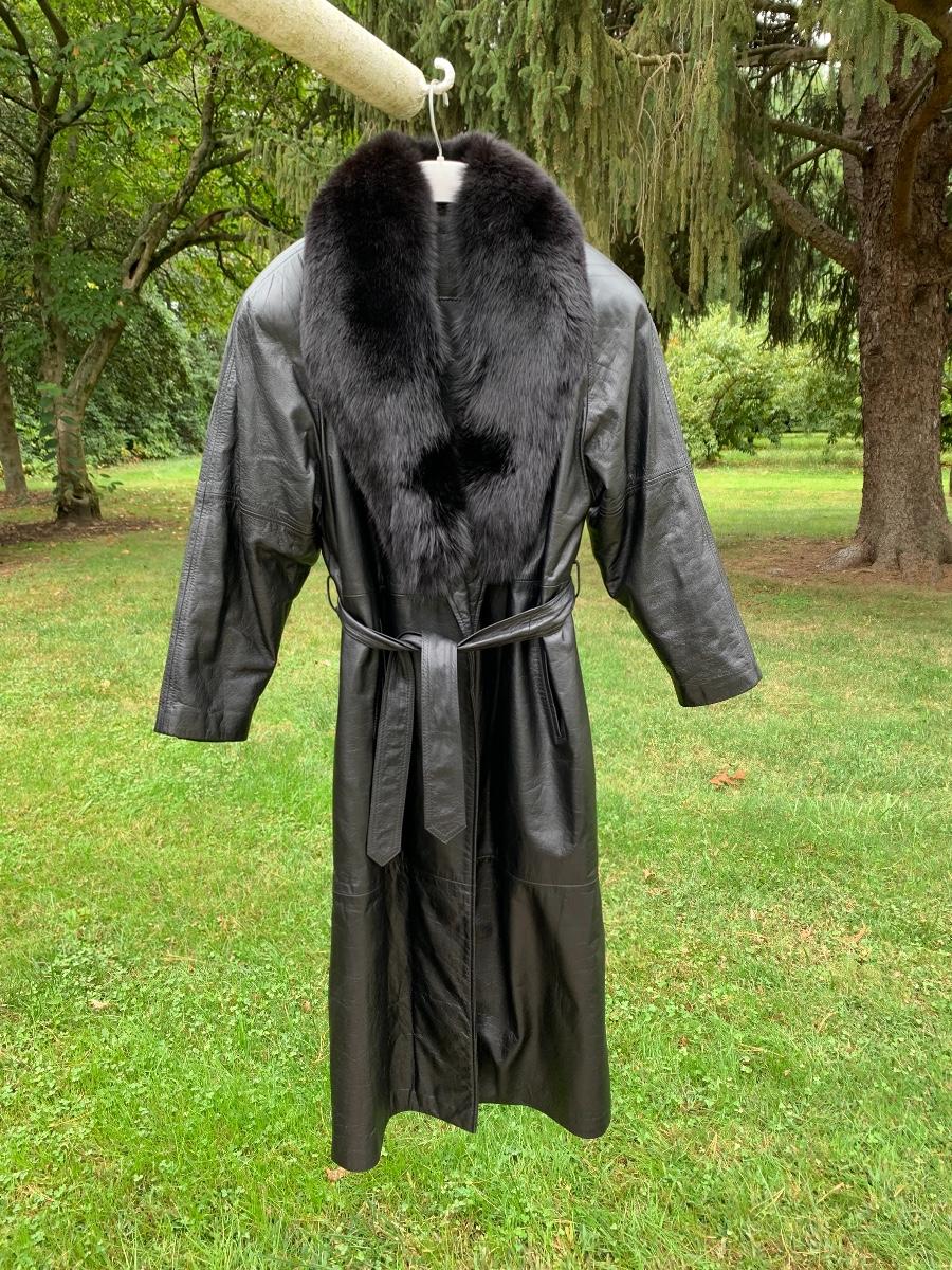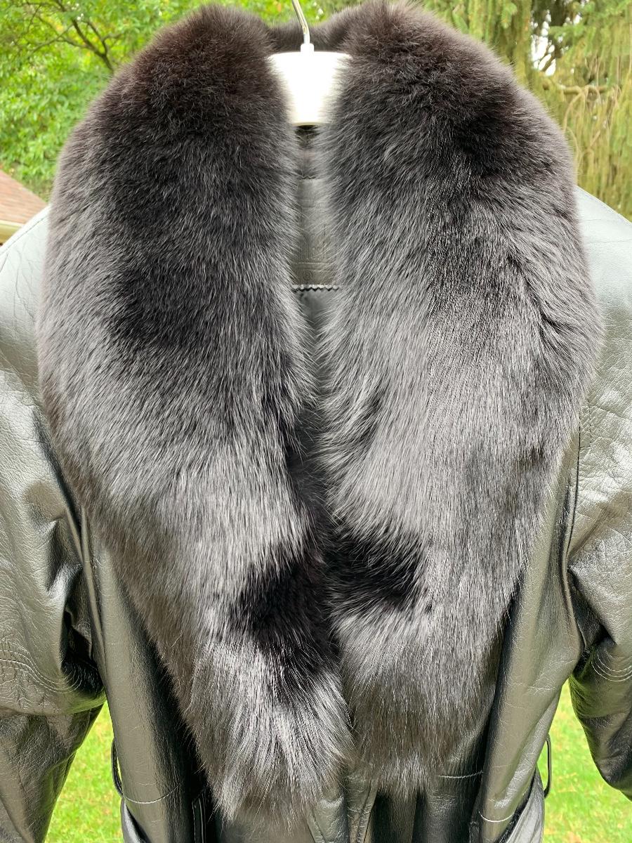Beautiful leather and fur long coat, lined for warmth.