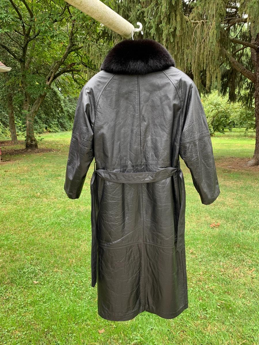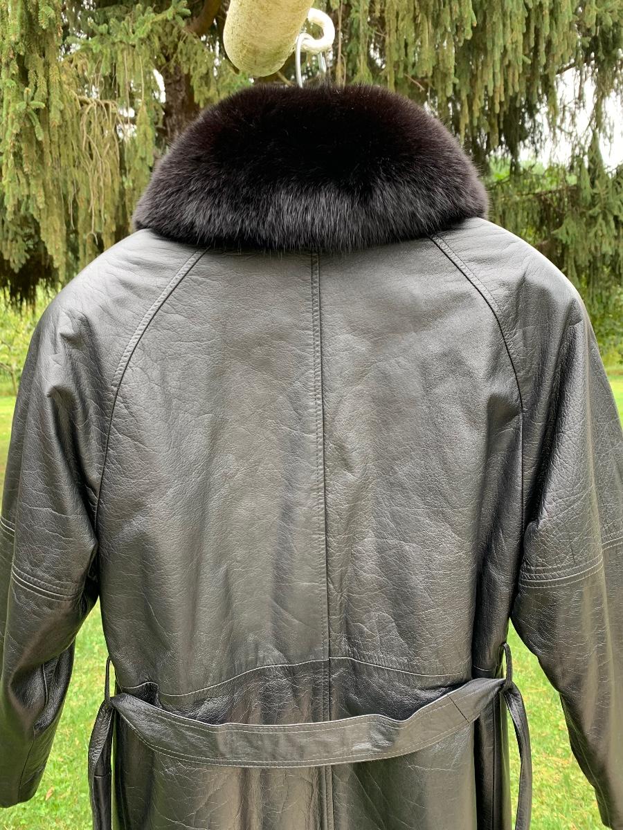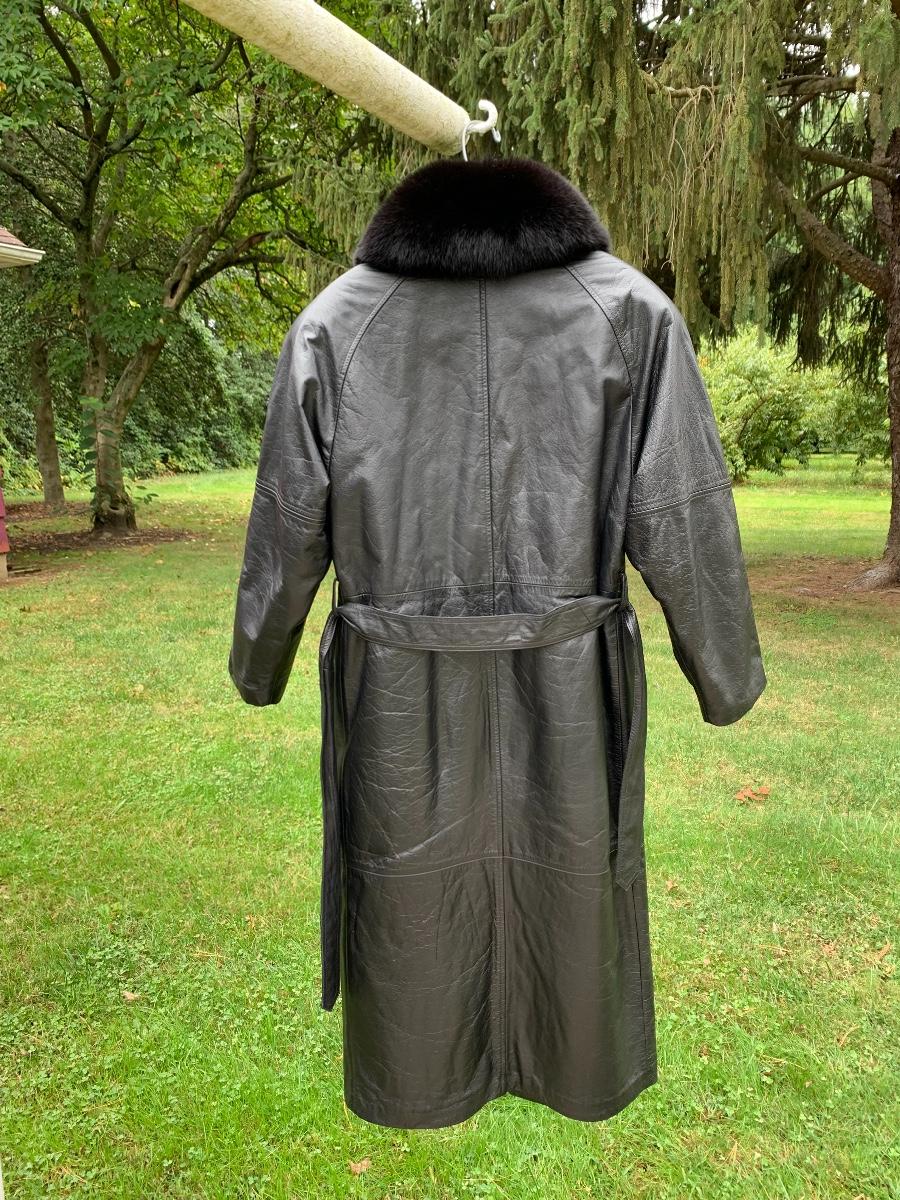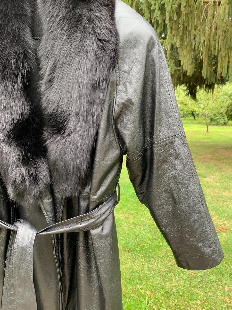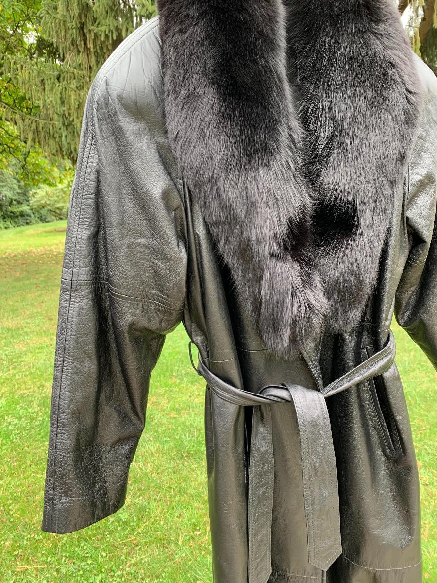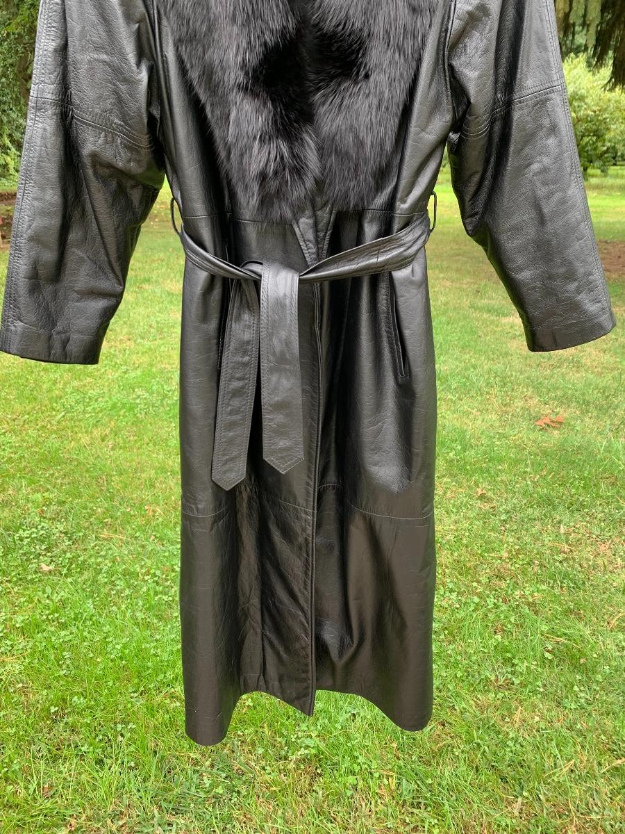 Beautiful leather and fur long coat, lined for warmth.