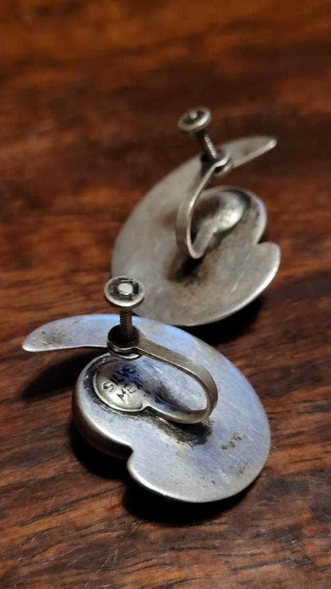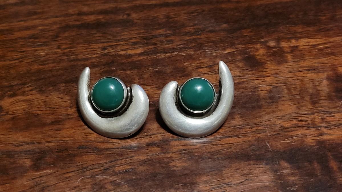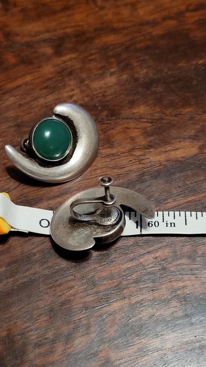 Lot 173: Pre-1948 Mexican Sterling and Green Lapis Screwback Earrings