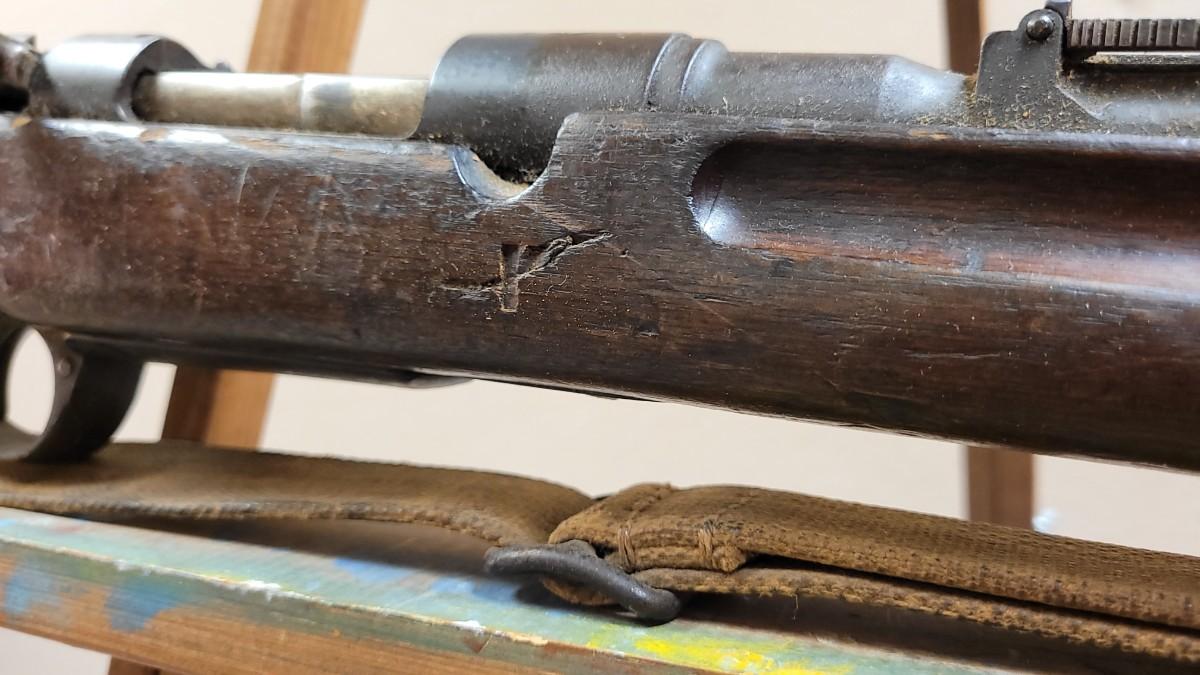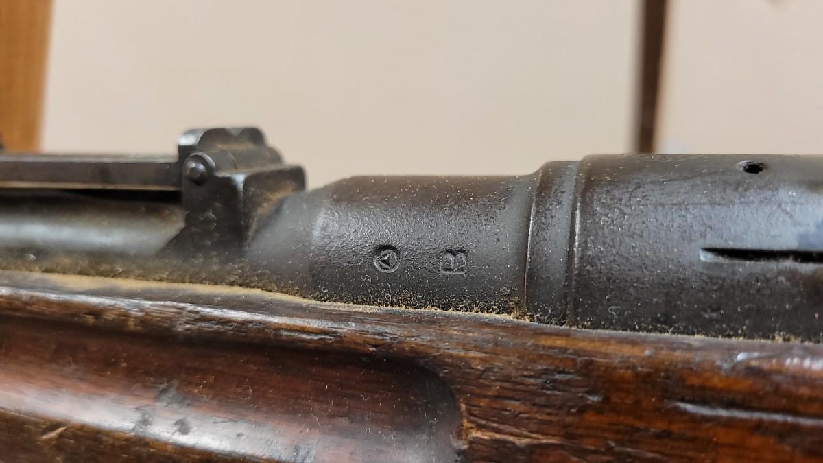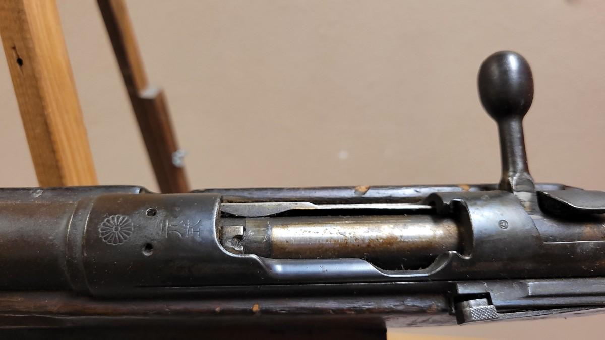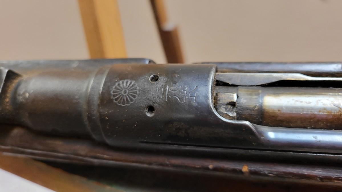 it takes a 6.5 mm shell they should match. The bolt comes out and when apart has a spring firing pin extractor and safety all that should match. There should be a number on the bayonet lug the number will match the last 3 of the serial number. The characters on top translate to type 38. It has a mum this is the mark of the emperor.