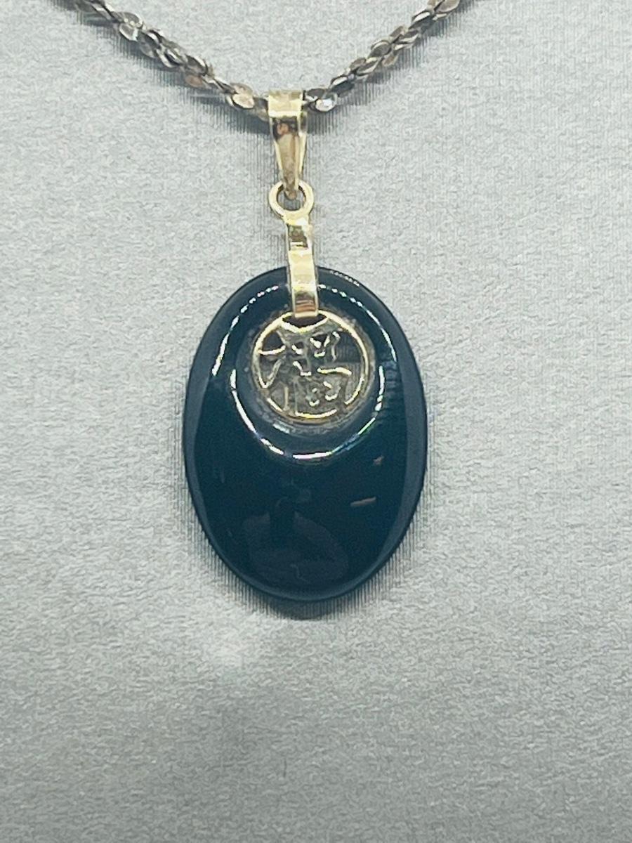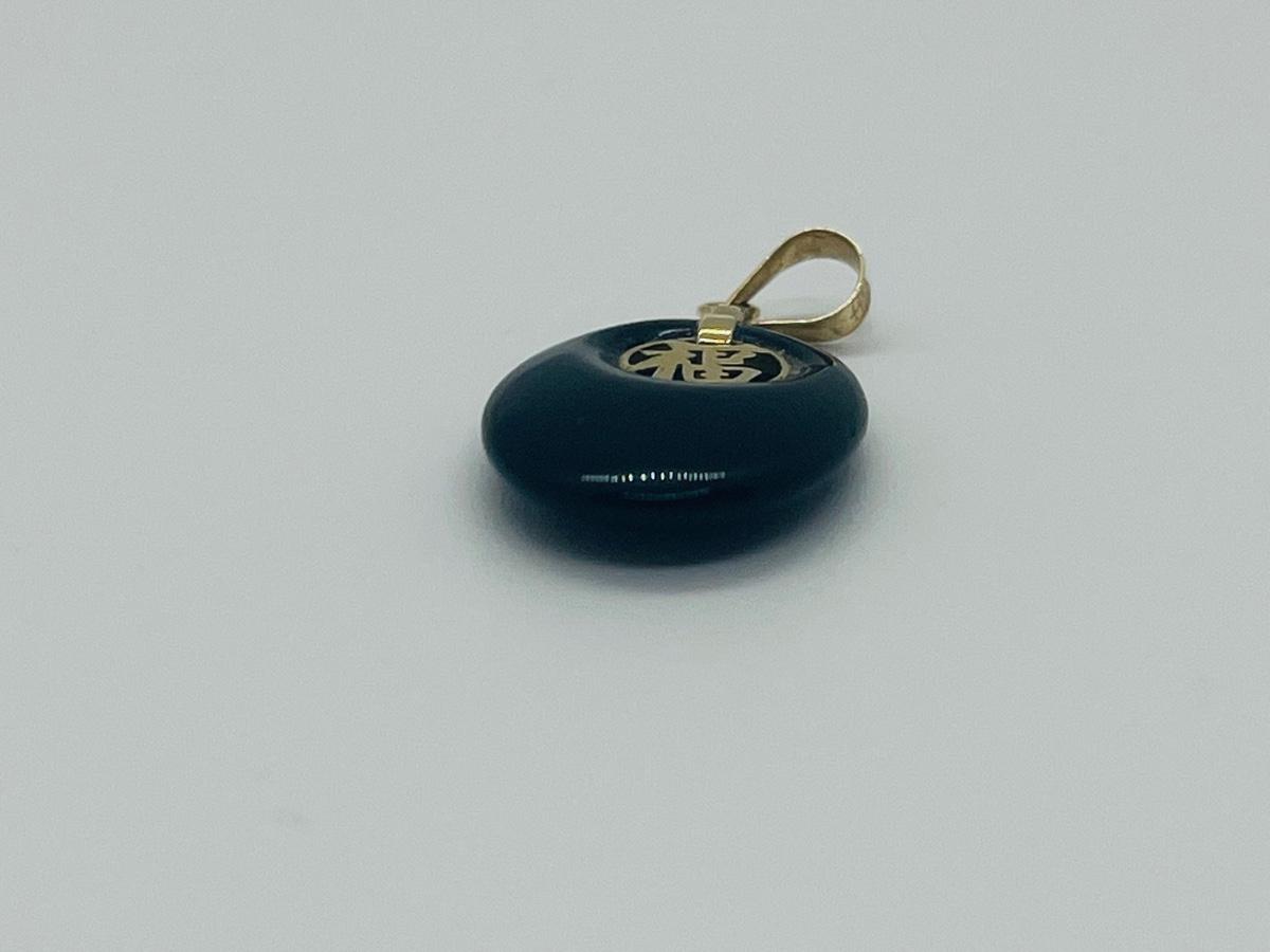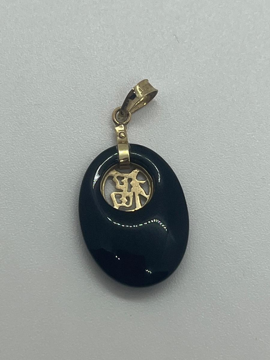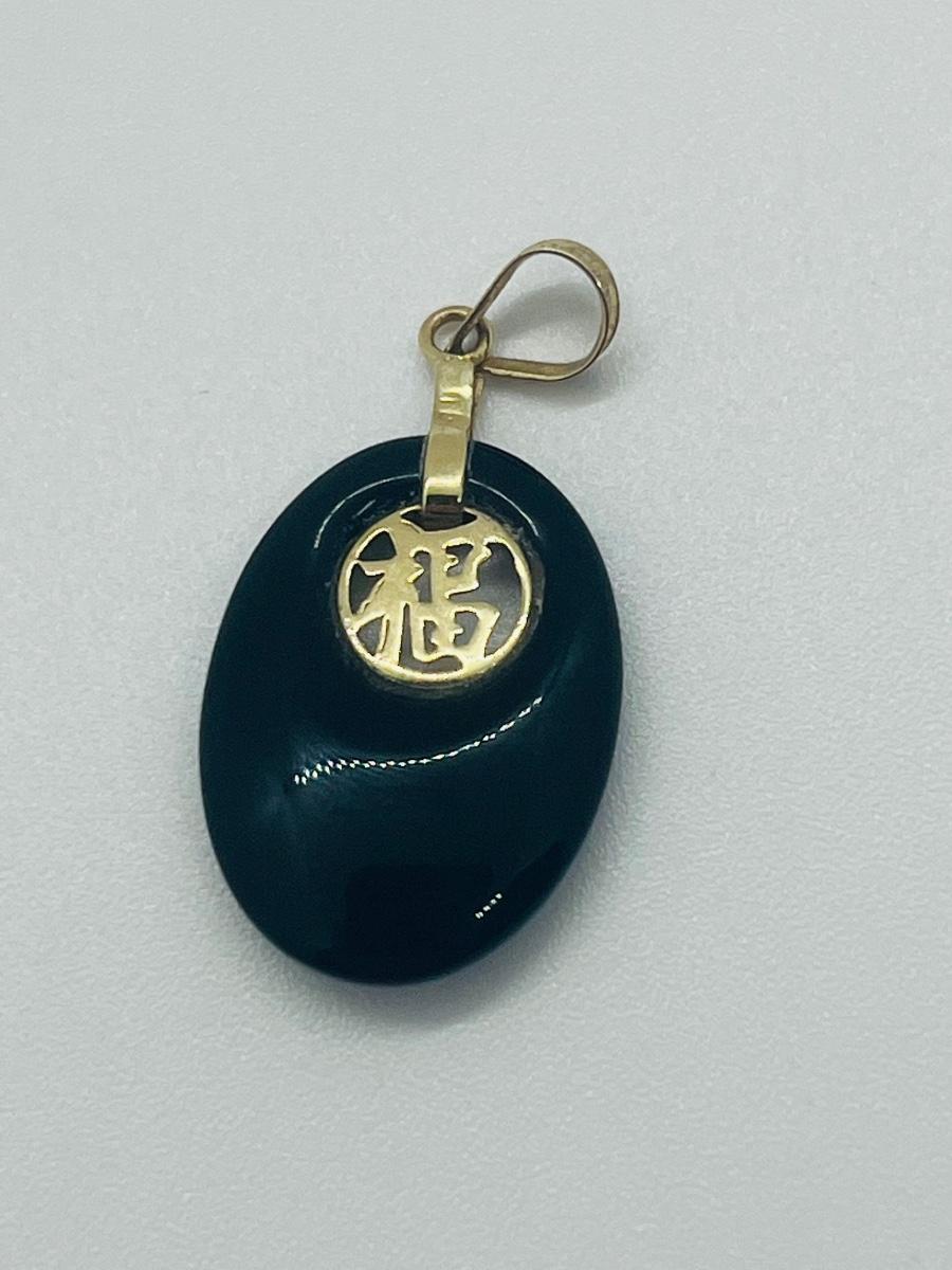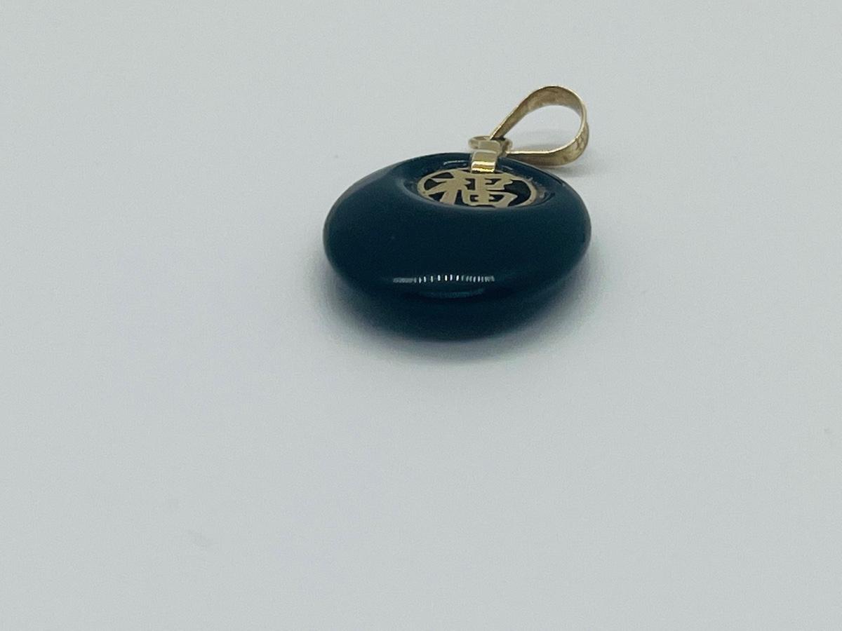 Lot 173: Vintage 14k 585 JJT Black Jade Good Luck Pendant