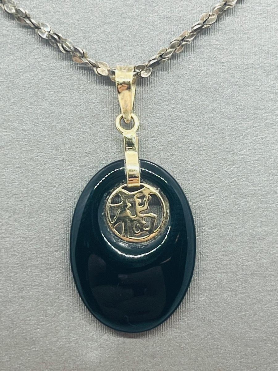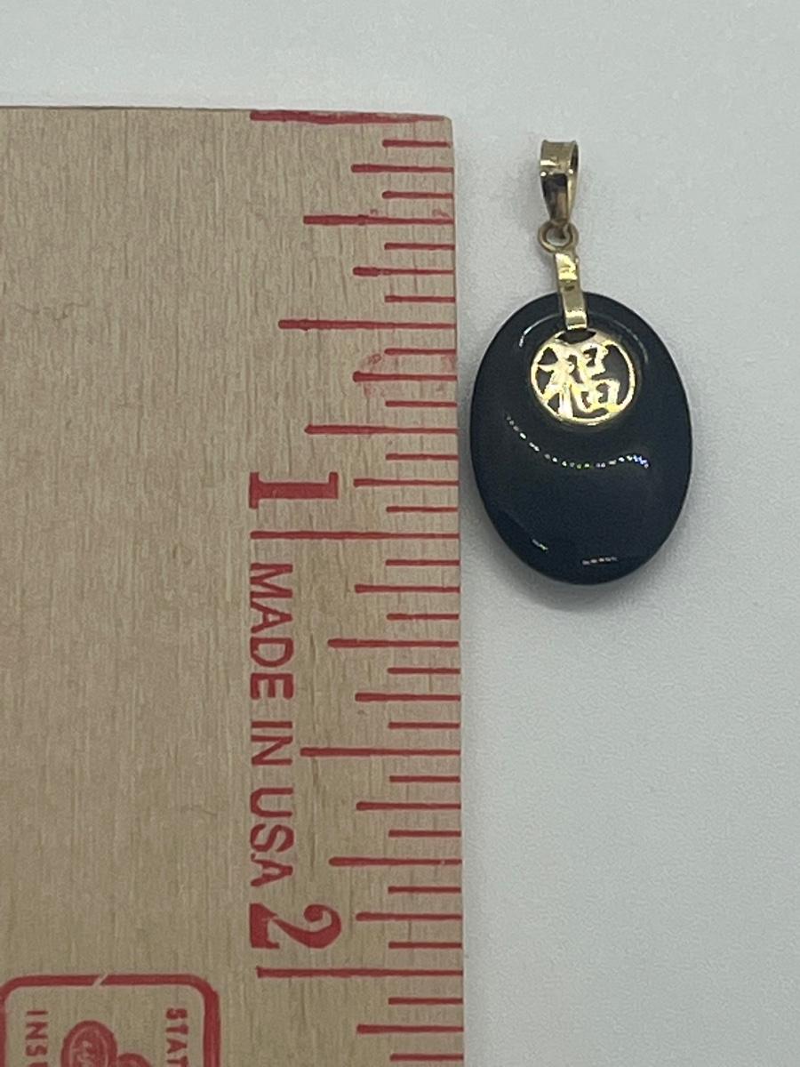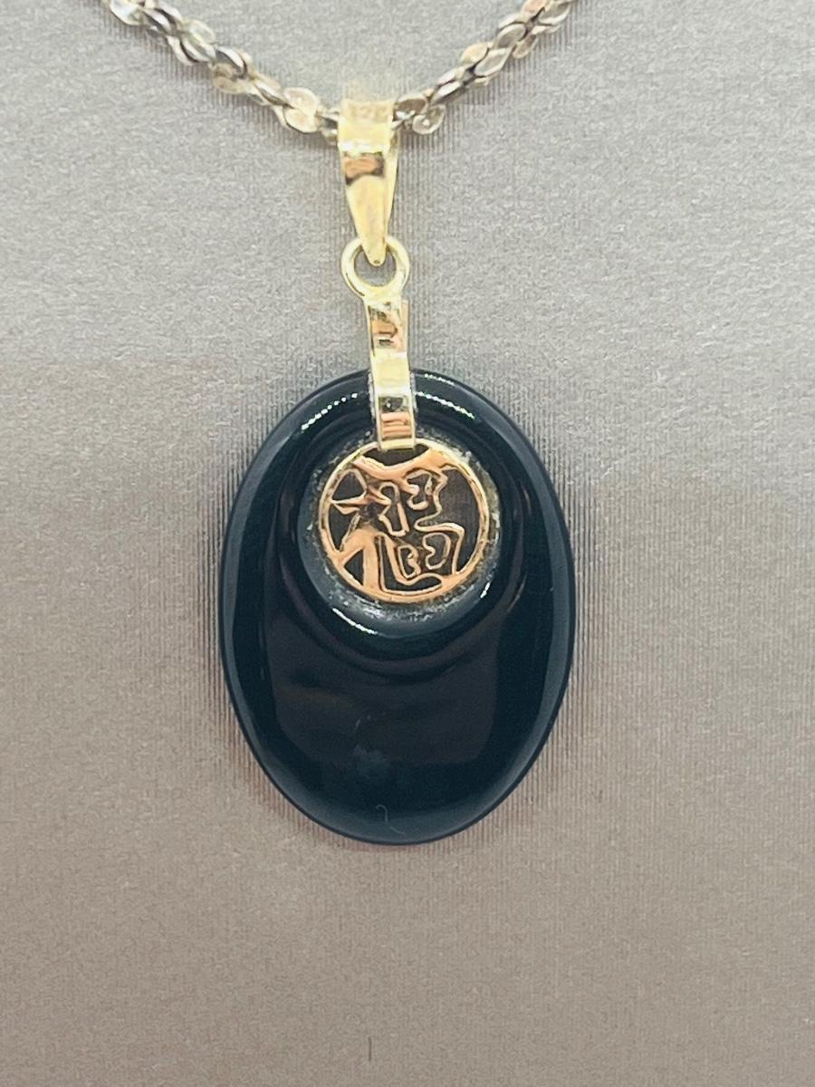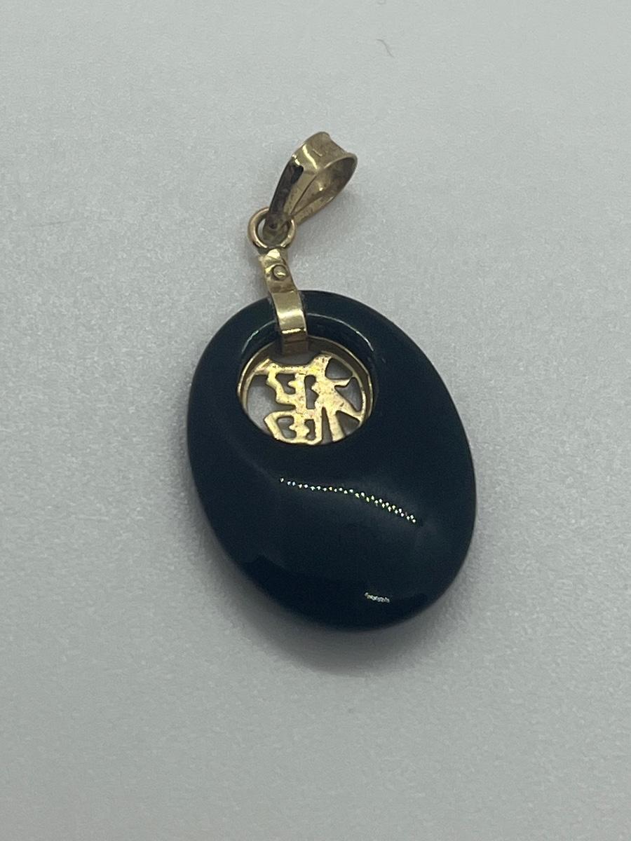 Lot 173: Vintage 14k 585 JJT Black Jade Good Luck Pendant