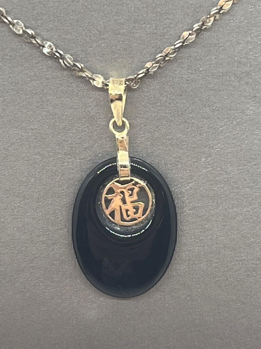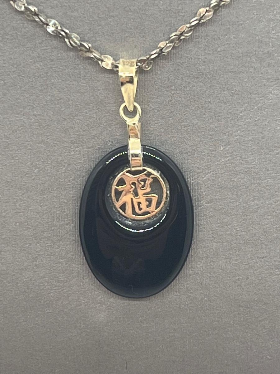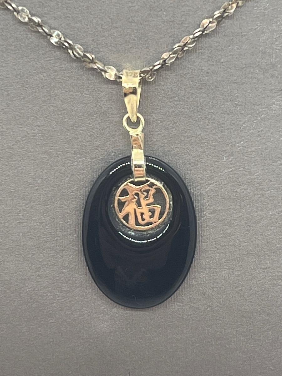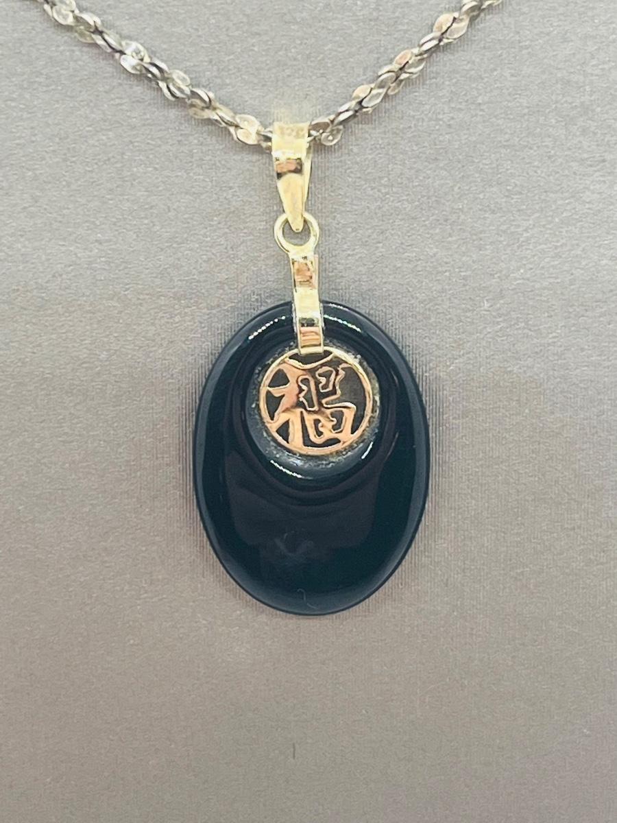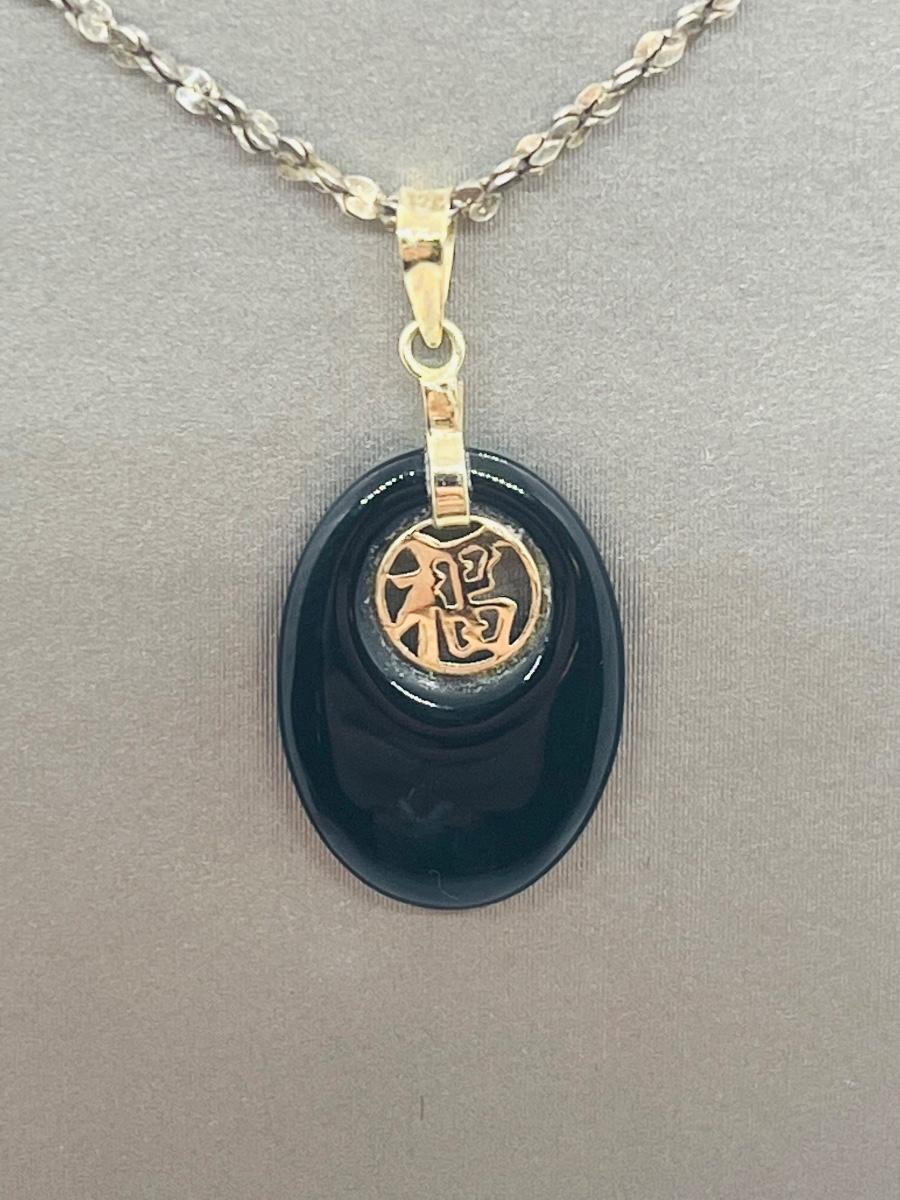Lot 173: Vintage 14k 585 JJT Black Jade Good Luck Pendant