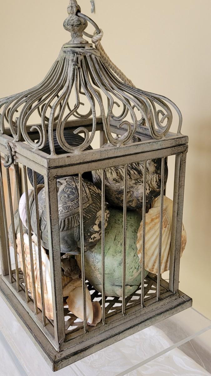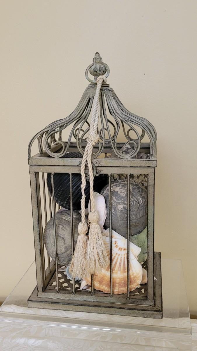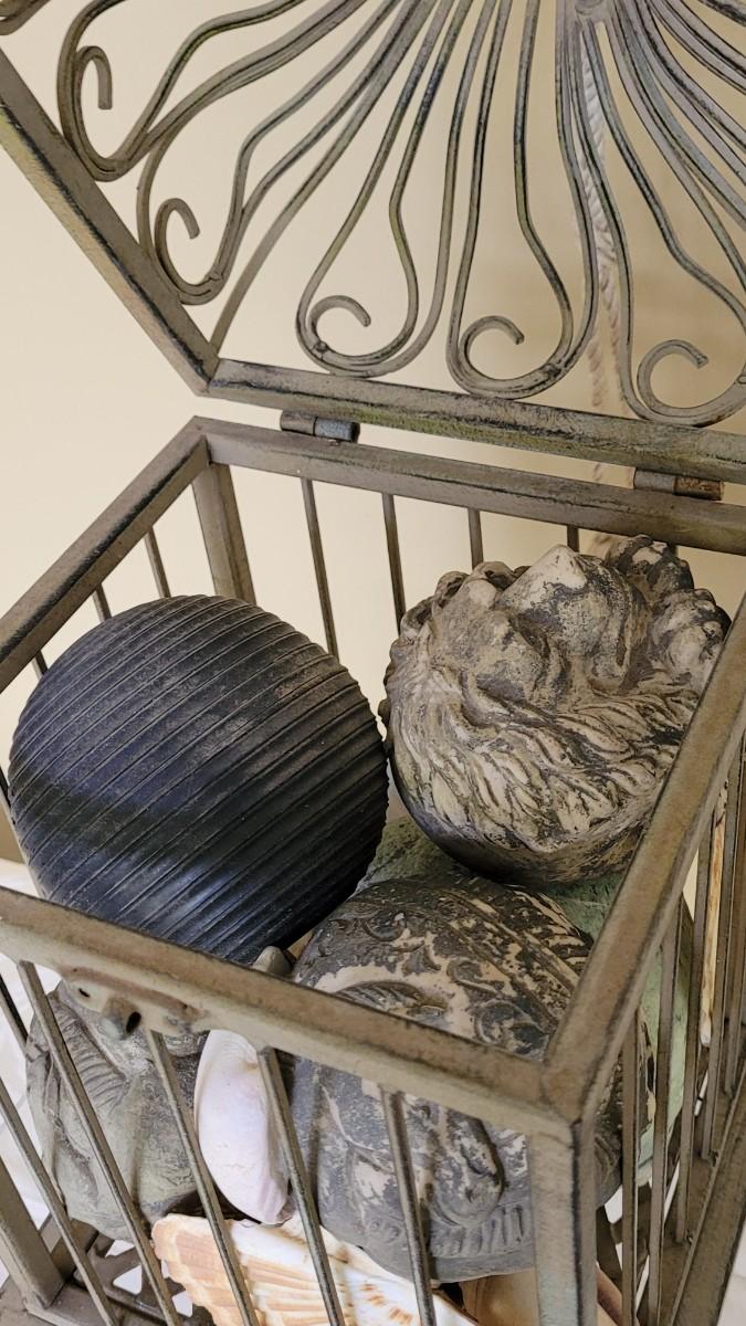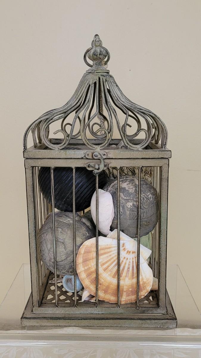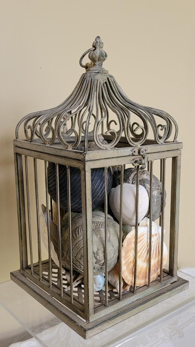 Lot 173: Metal Birdcage filled with Shells and Decorative Balls
