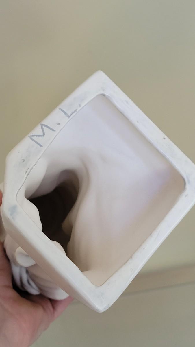 Signed on the bottom. White Glaze has a blue tent in the creases.