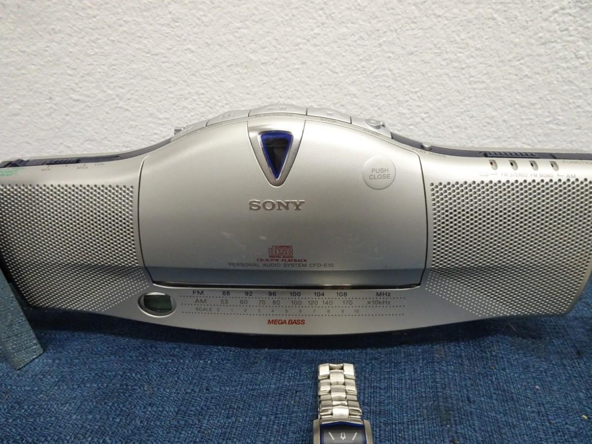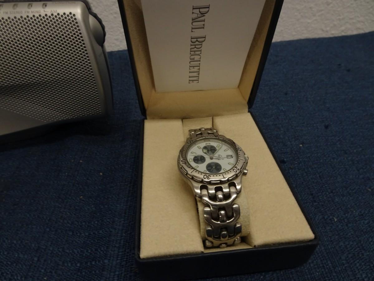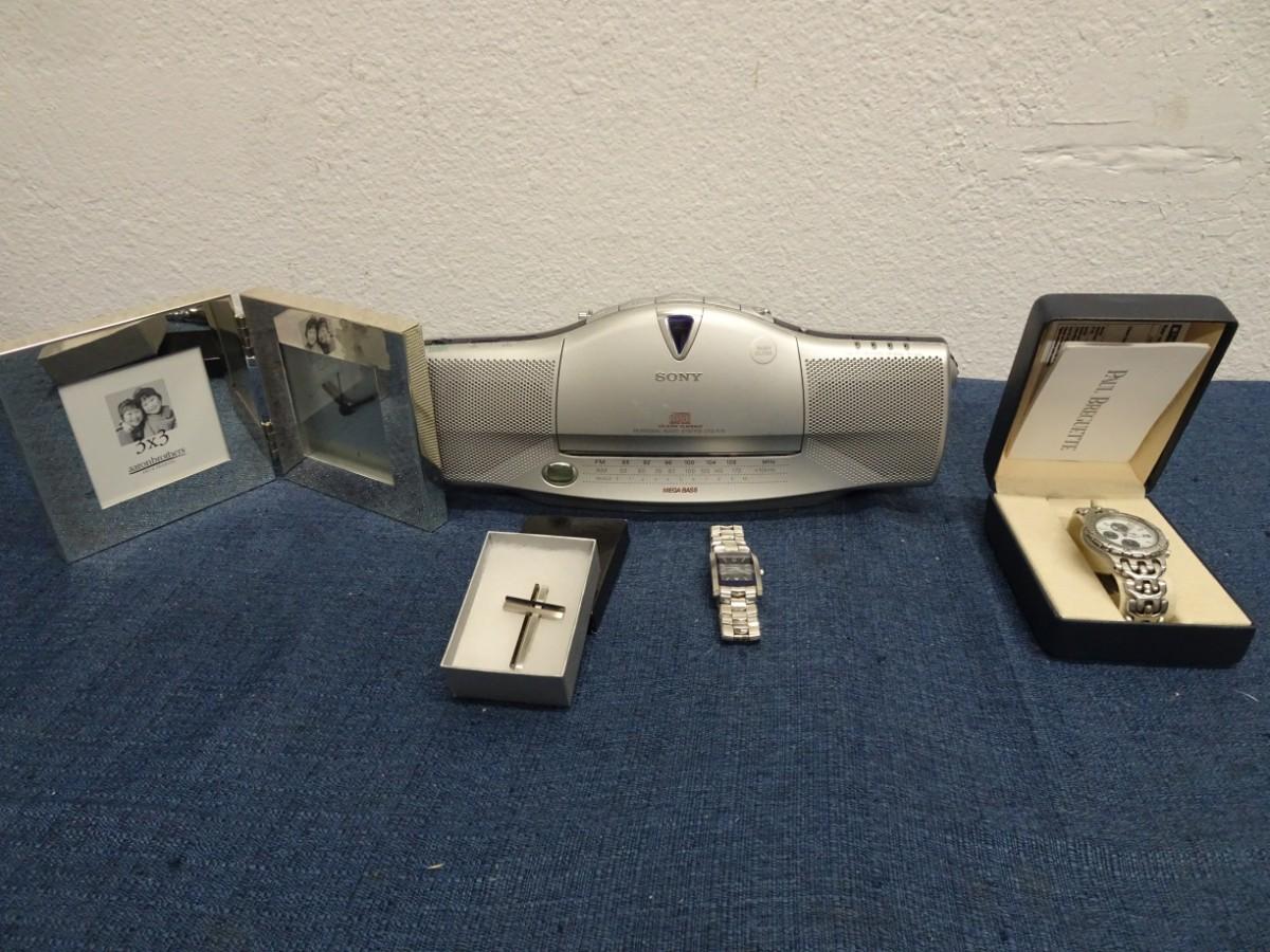 MISC ITEMS. TWO MENS WATCHES, CROSS AND RADIO
