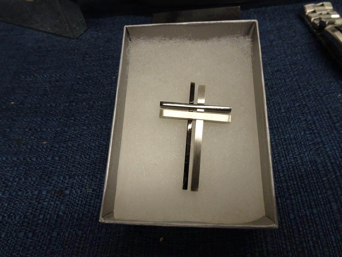 LOT 173. MISC ITEMS. TWO MENS WATCHES, CROSS AND RADIO