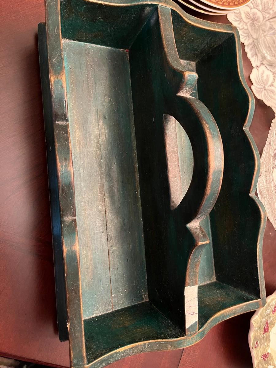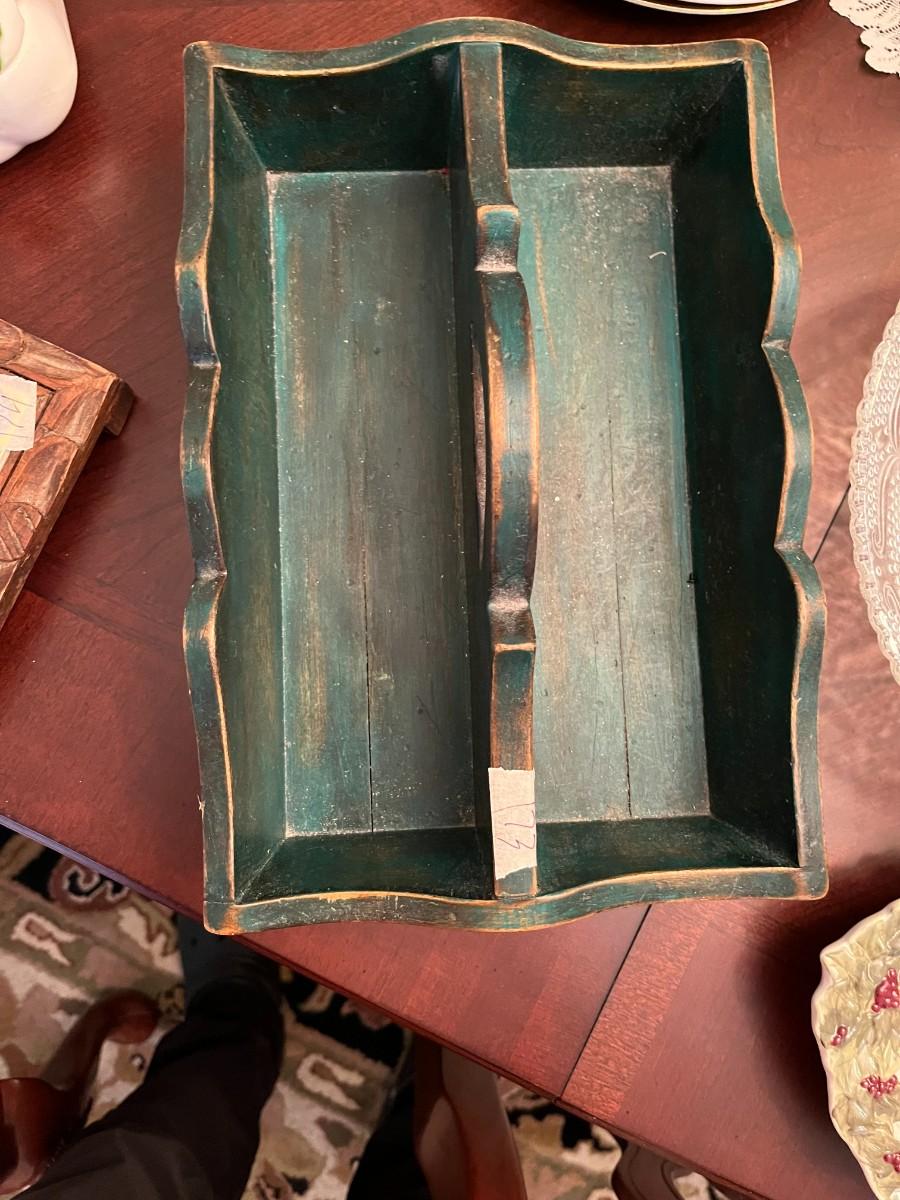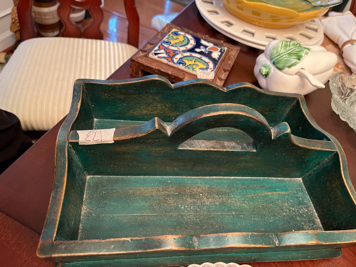 Decorative Green Wooden Organizer with Handle - Lot 173