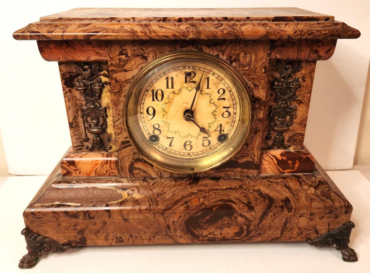 Lot #173 Antique Seth Thomas Faux Marbe Mantle Clock - ticks and chimes