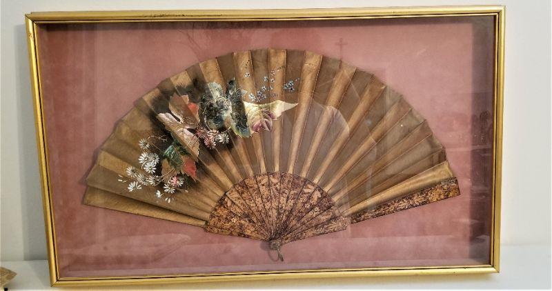 Lot #173 Beautiful Antique Fan (Fernware sticks) in Display Case