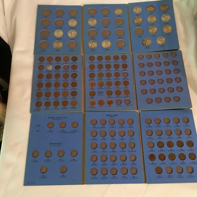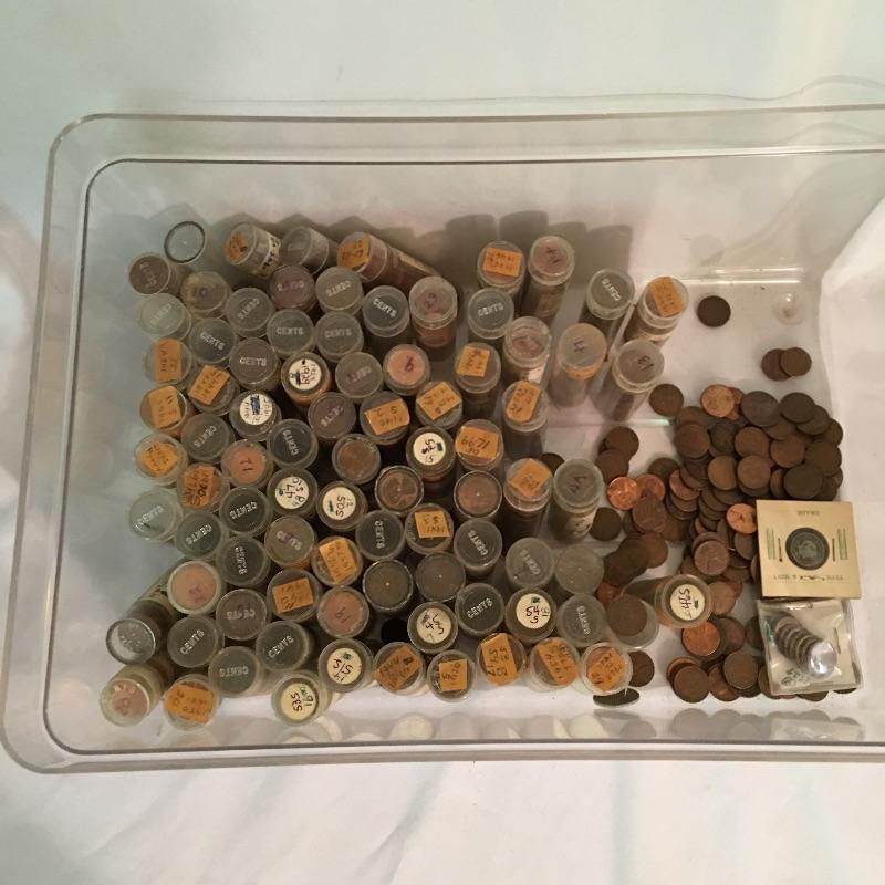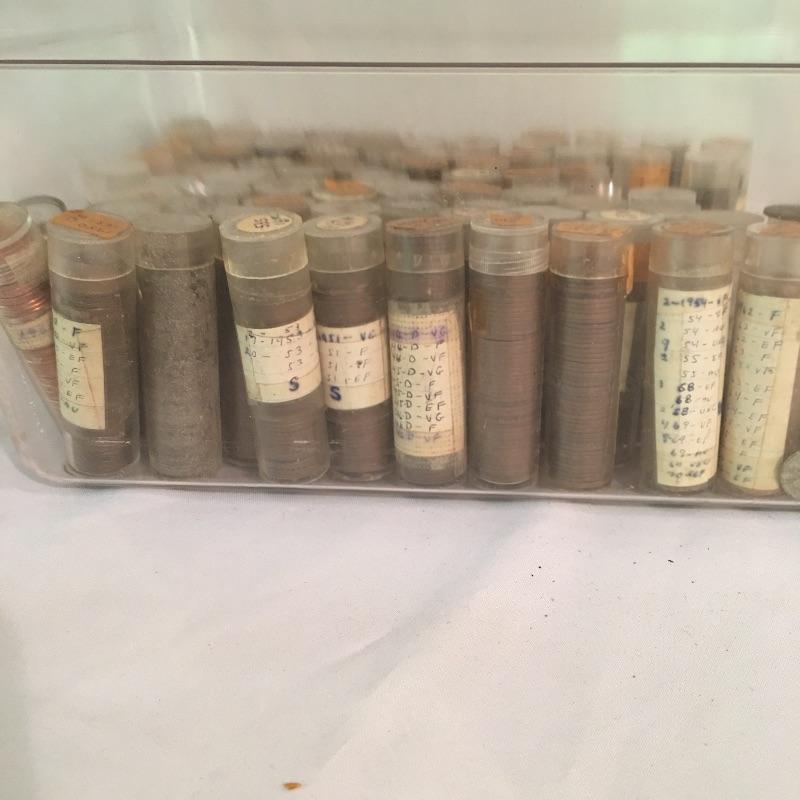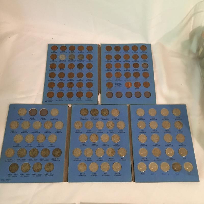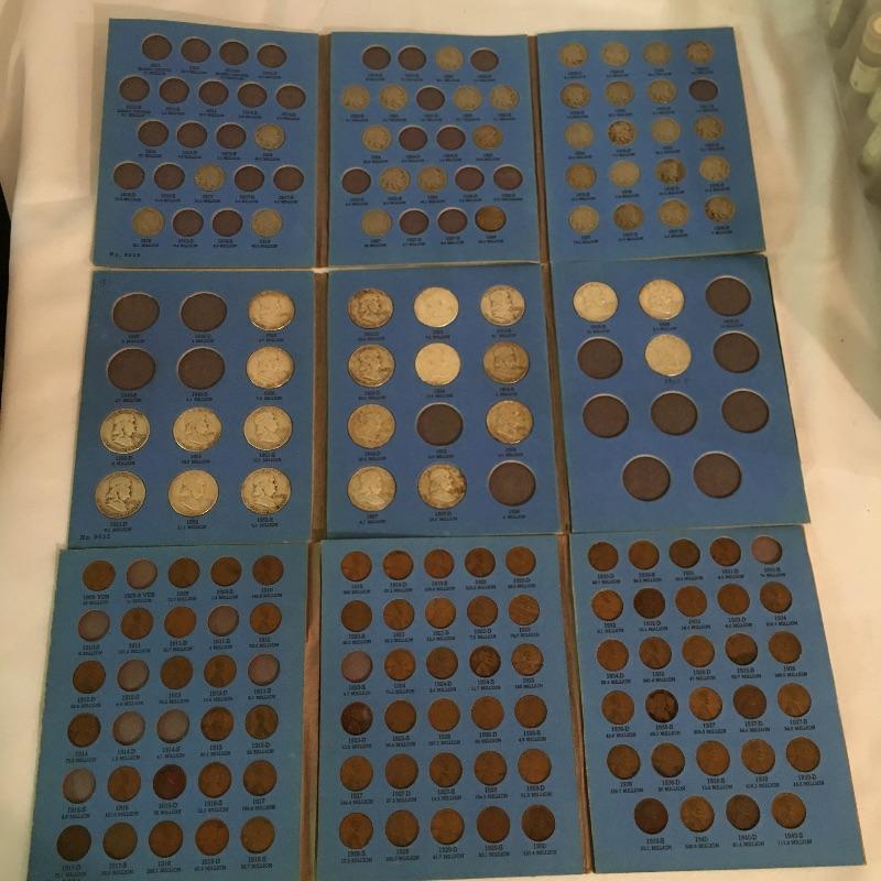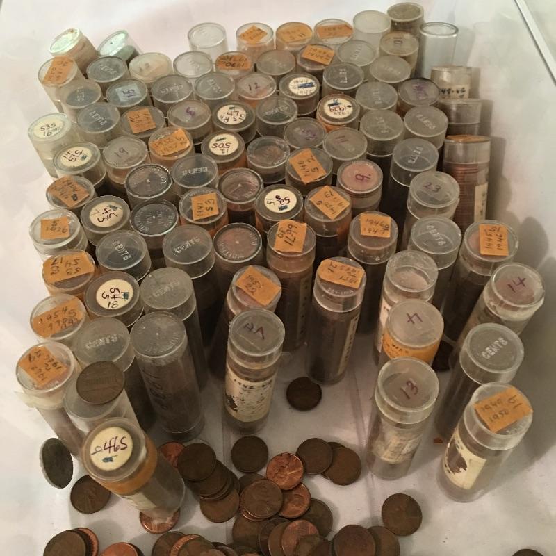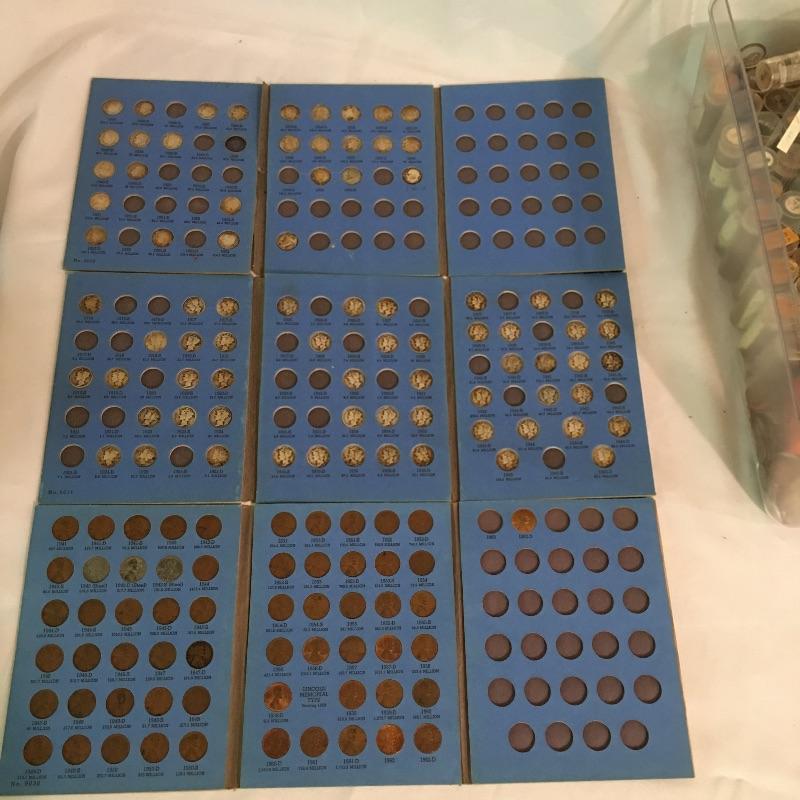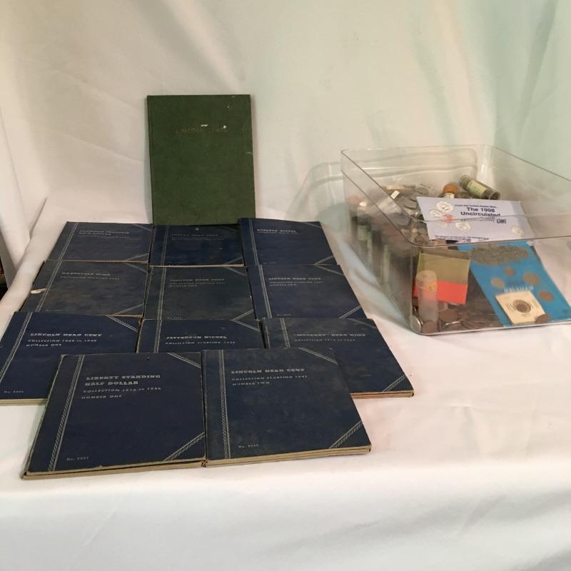Collection of coins. Lot more Includes a plethora of pennies in tubes, collector books of Ben Franklin and Liberty Standing half dollars, Lincoln and Indian head cents, Jefferson and Buffalo nickels, Roosevelt and Mercury dimes, 1992 Proof Set, foreign coins and more. We cannot guarantee that the coins in books are in the correct position, see pictures. A great way to add to your coin collection.