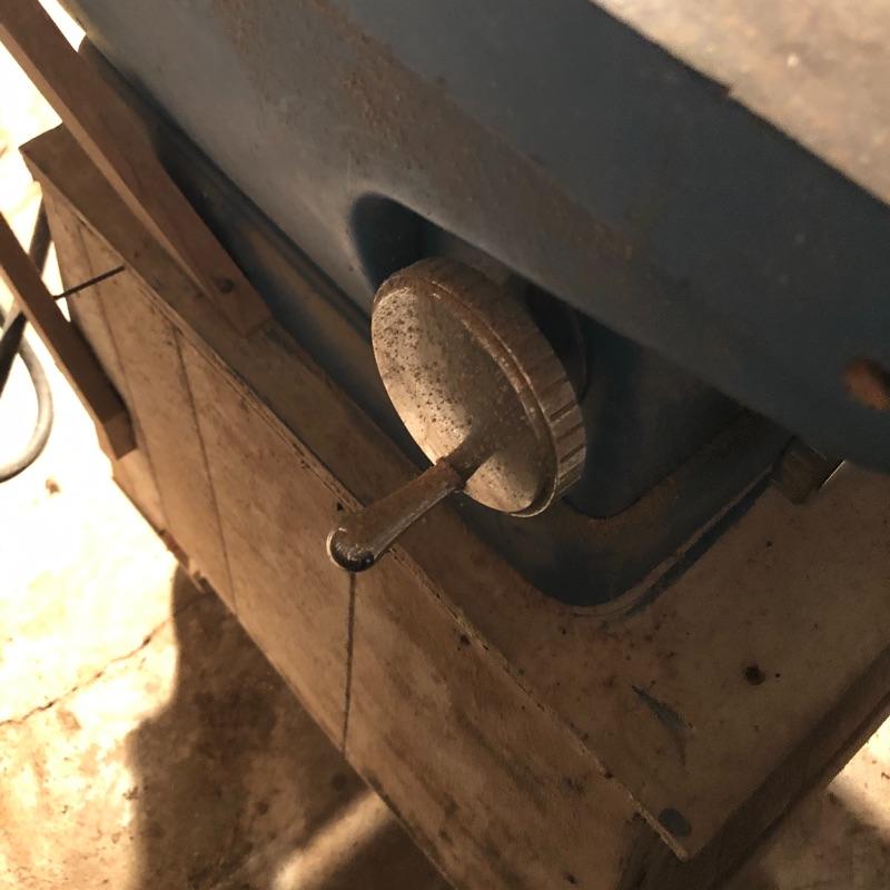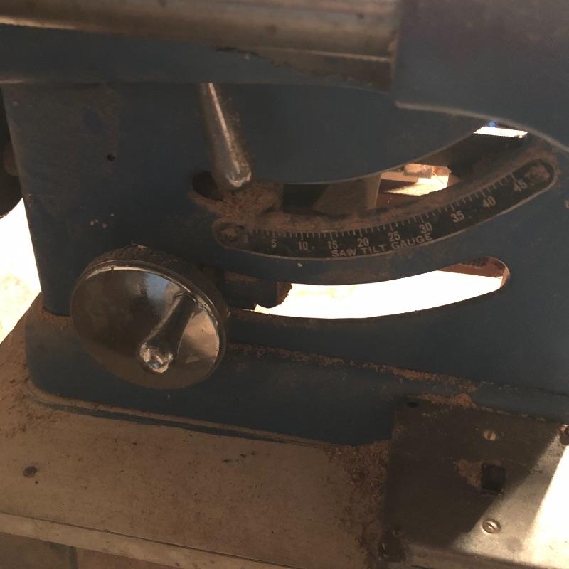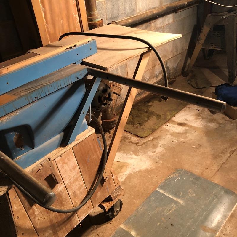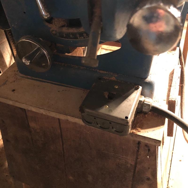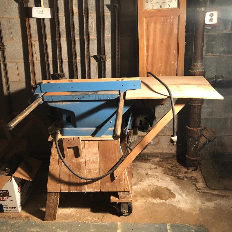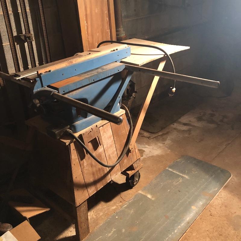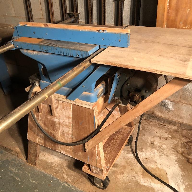 What a monster of a table saw! This industrial table saw is on a home made wooden base and is very solid. Note a bit of surface rust on table. Powers on and blade turns. This piece of equipment is industrial and will get any job done! It may require disassembly from its’ base to get out the door. Bring help to load. Measurements with base are approximately 52” x 44.5” ( including guide bars) 43”. Local pick up only.