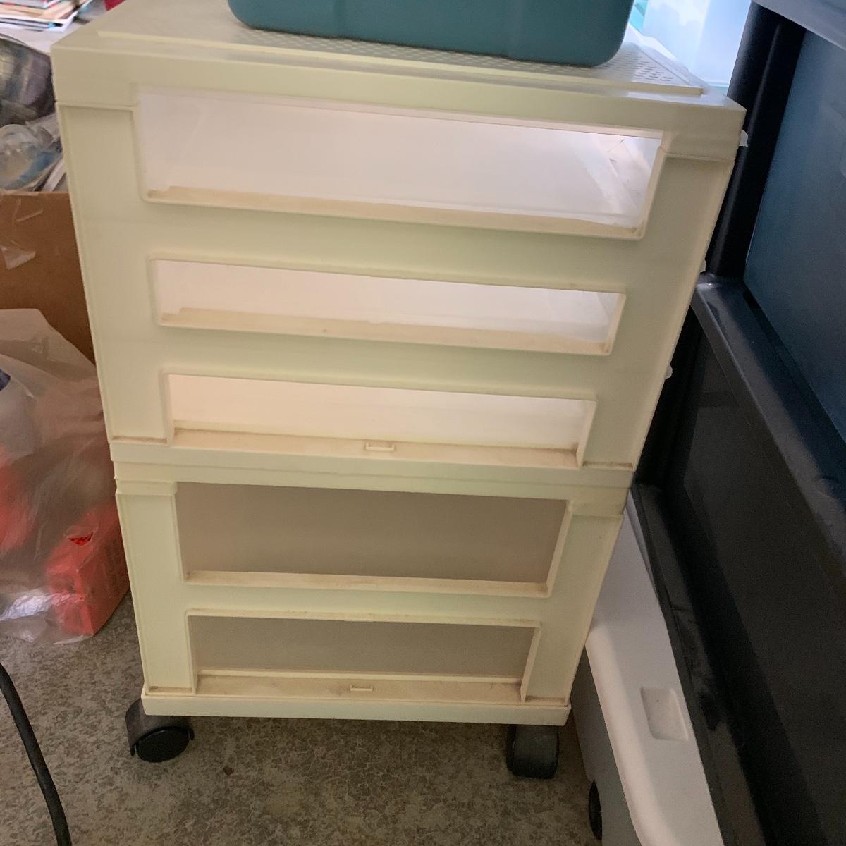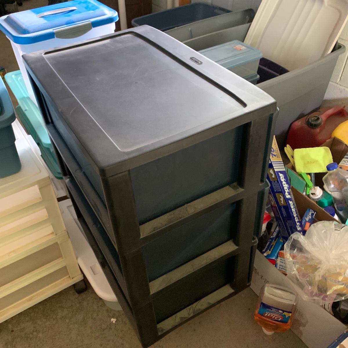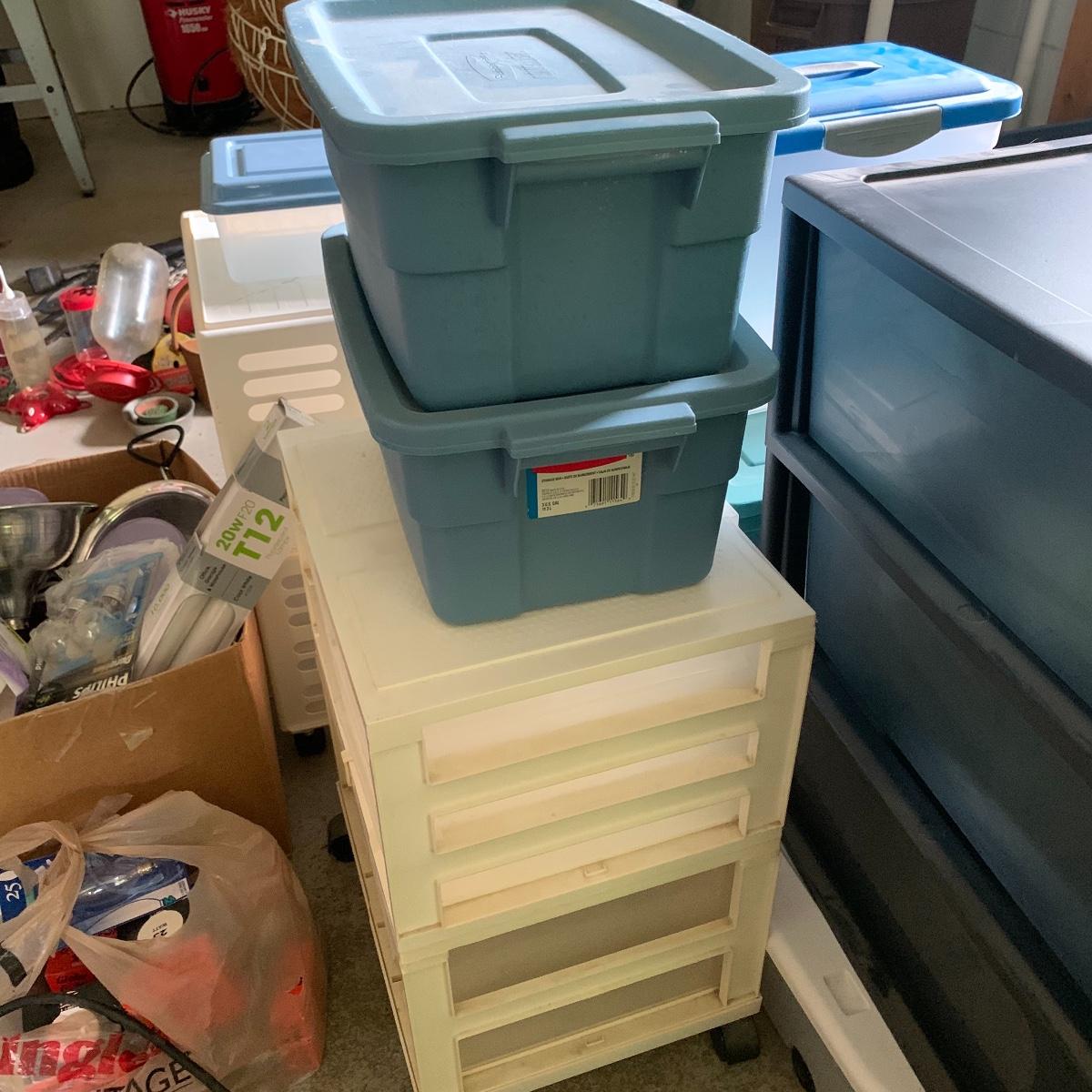 Time to get organized! This lot includes plastic bins of every size! If you have odds and ends to store, look no further. There are small, medium, and large bins. Several have drawers are are on wheels for office supplies. Local pickup only.