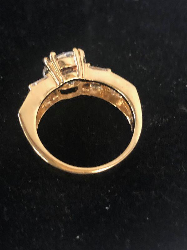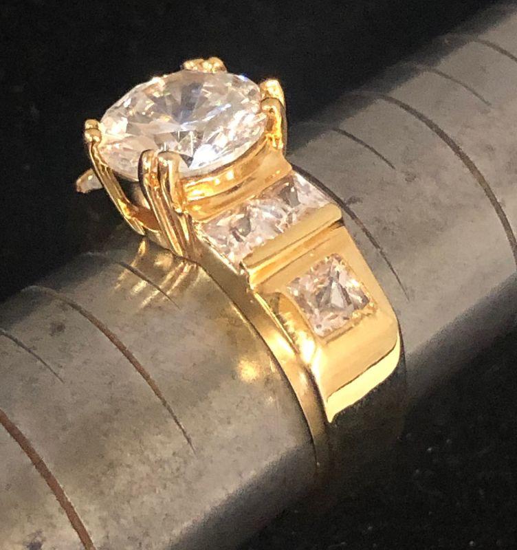 Lot #173 Huge Faux Round Diamond Size 7 Gold Tone