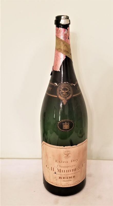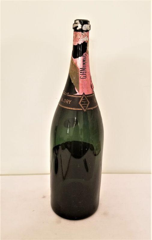 Perfect display item for your bar - 21" tall empty bottle of GH Mumm & Co. Champagne (extra dry) - Reims, France. Held 4 quarts, 1 pint, and 12 oz - that's a LOT of champagne! Great conversation piece.
