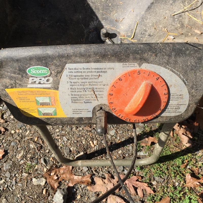 Scott’s spreader measures 22.5” x 40” x 31”.
