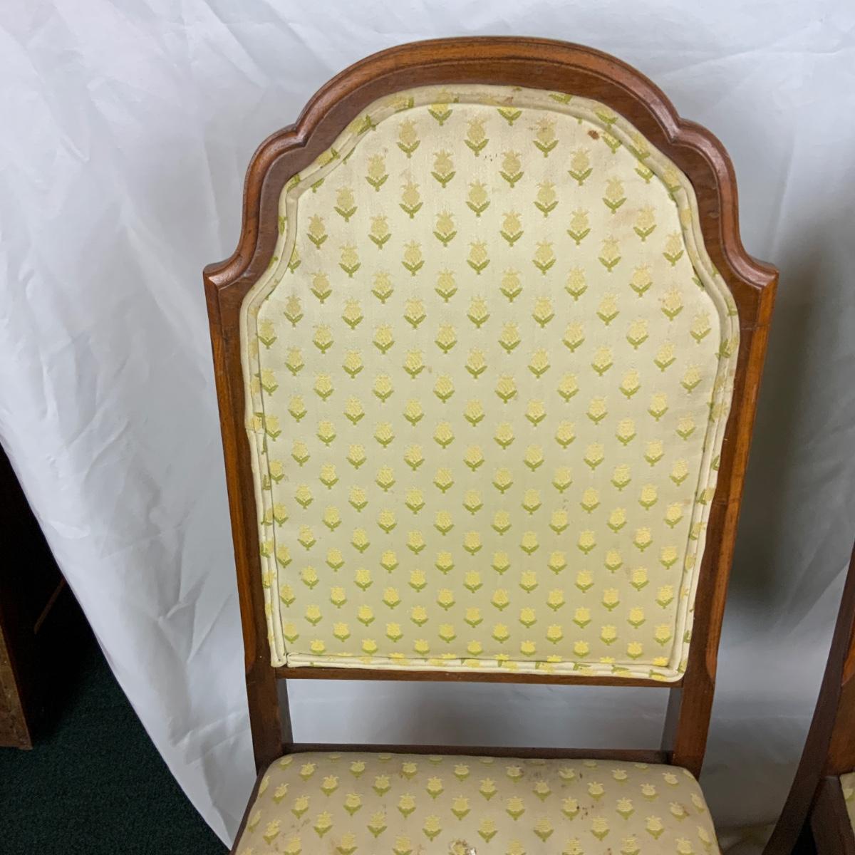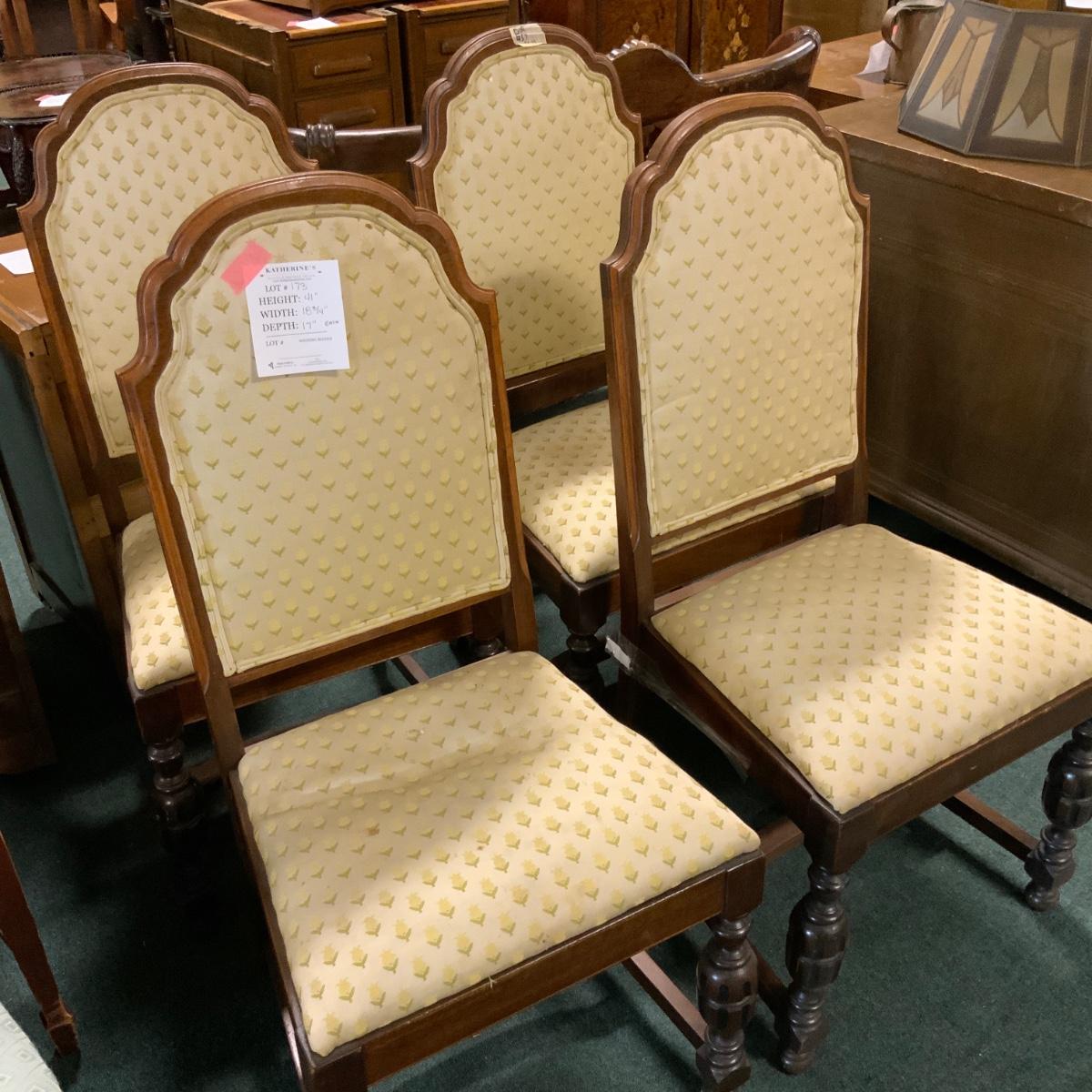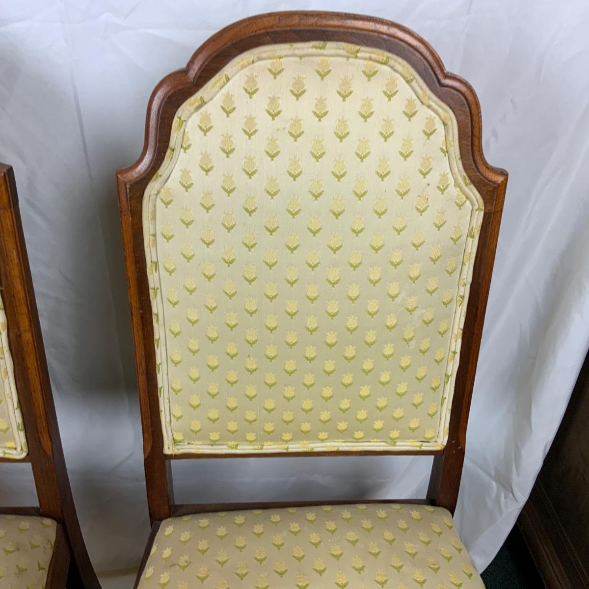 Set of Four Armless Dining Chairs. Solid and ready to use. We found two more chairs when we were sorting through things. All four are identical. See photo for additional two chairs! //::\\ Please see photos for details and condition. No attempt has been made to hide any imperfections. All items listed in this auction are warehouse items, and need to be cleaned. A majority of the items need restoration as well. All items are sold AS IS and WITHOUT GUARANTEE. If you are uncertain about an item, DO NOT BID. Due to the nature of this online auction in-person inspection is HIGHLY recommended. All Sales are FINAL. Pick Up Times are FIRM. Please confirm with your own schedule that you can pick up in the scheduled times listed in the Terms and Conditions. Any questions please message the auctioneer. DO NOT Contact The Harp Gallery.