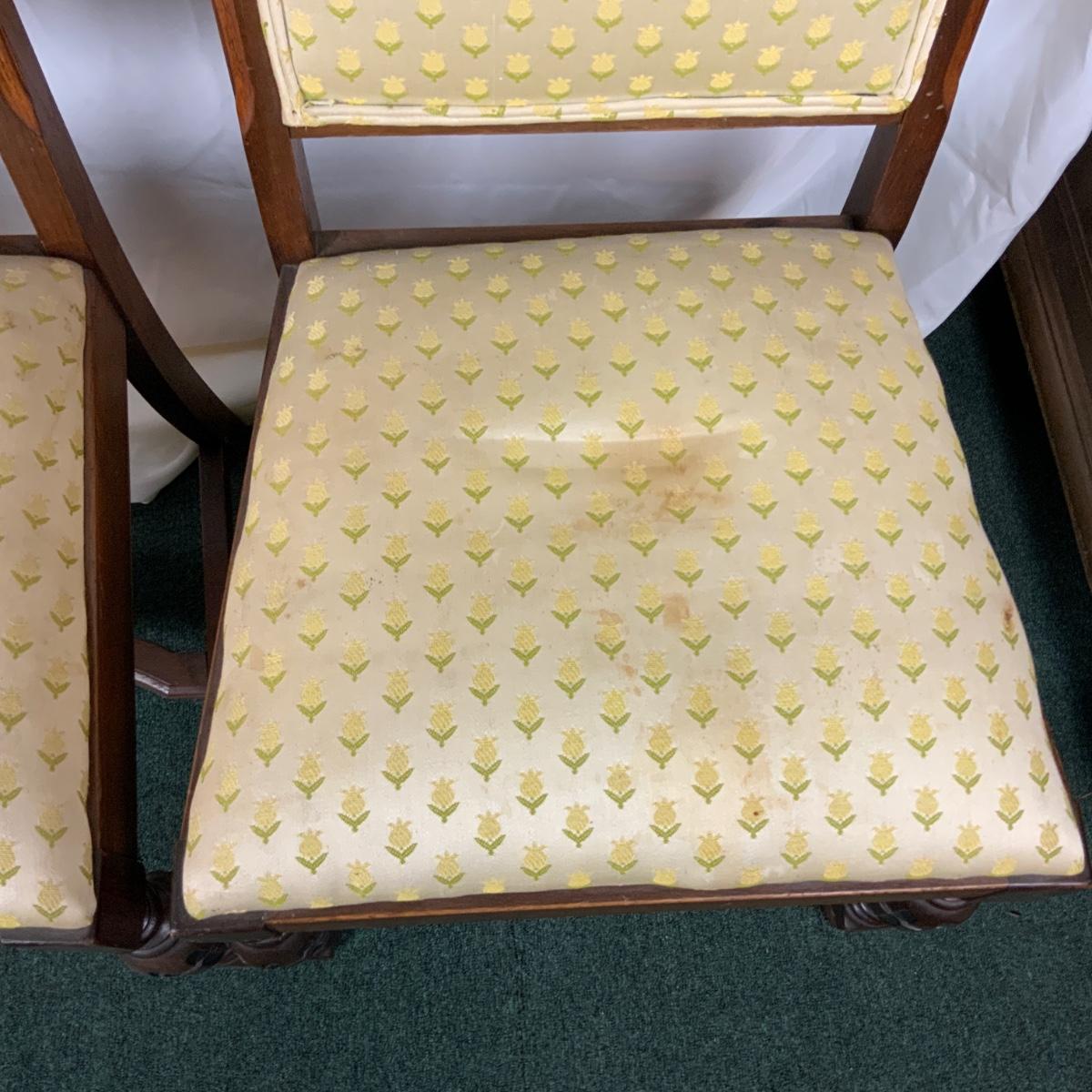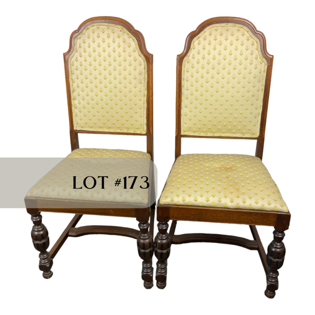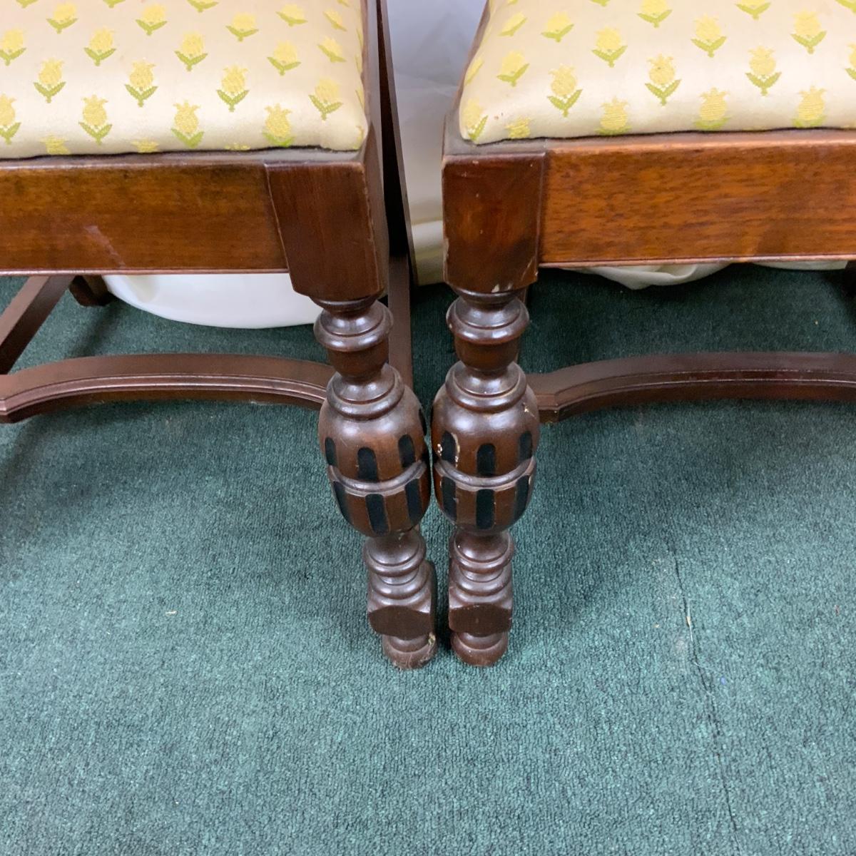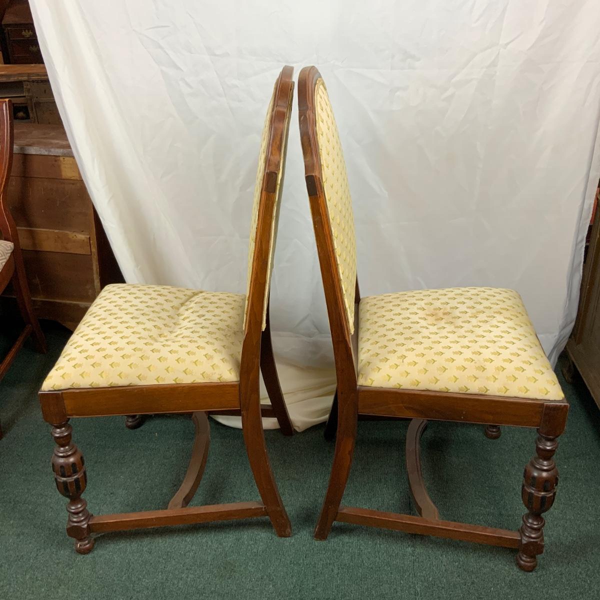 Set of Four Armless Dining Chairs. Solid and ready to use. We found two more chairs when we were sorting through things. All four are identical. See photo for additional two chairs! //::\\ Please see photos for details and condition. No attempt has been made to hide any imperfections. All items listed in this auction are warehouse items, and need to be cleaned. A majority of the items need restoration as well. All items are sold AS IS and WITHOUT GUARANTEE. If you are uncertain about an item, DO NOT BID. Due to the nature of this online auction in-person inspection is HIGHLY recommended. All Sales are FINAL. Pick Up Times are FIRM. Please confirm with your own schedule that you can pick up in the scheduled times listed in the Terms and Conditions. Any questions please message the auctioneer. DO NOT Contact The Harp Gallery.
