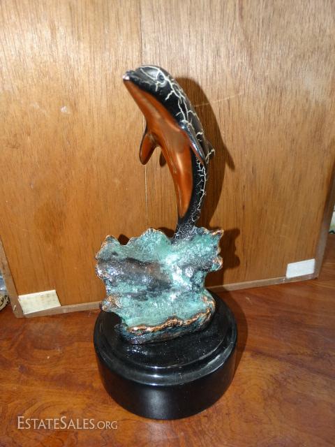 Lot #173 - VINTAGE SIGNED DONJO Dolphin Sculpture