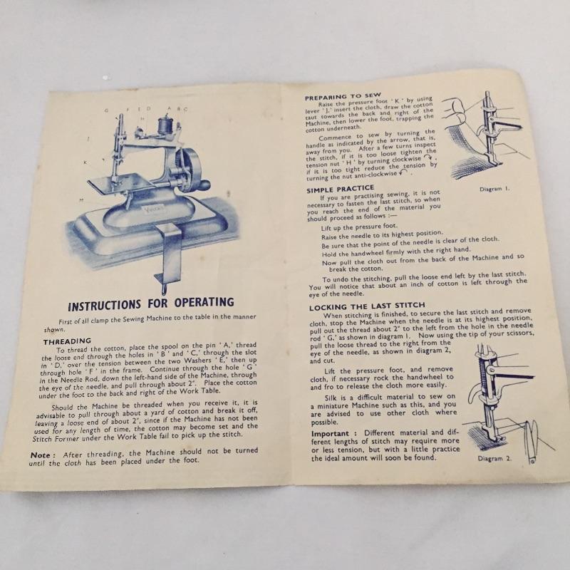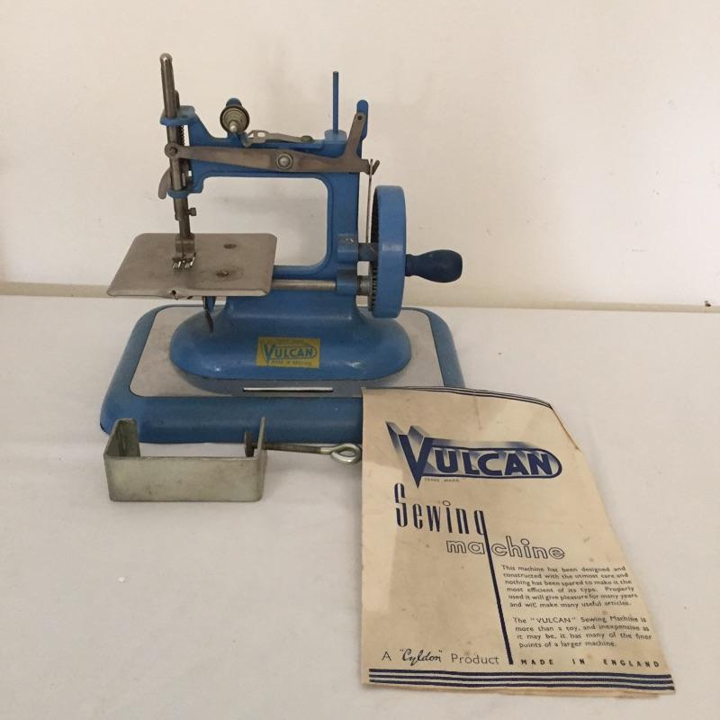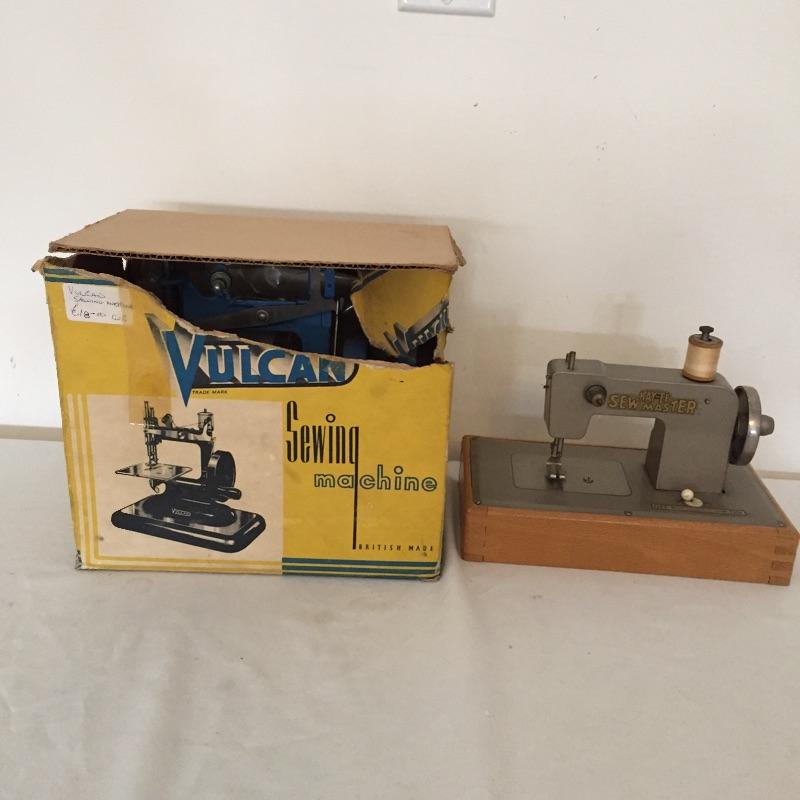 Vulcan sewing machine with box and Kayanee SewMaster Battery powered sewing machine. Both machine crank freely. Vulcan Box is showing its age.