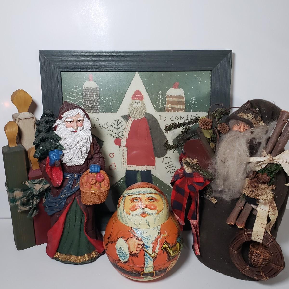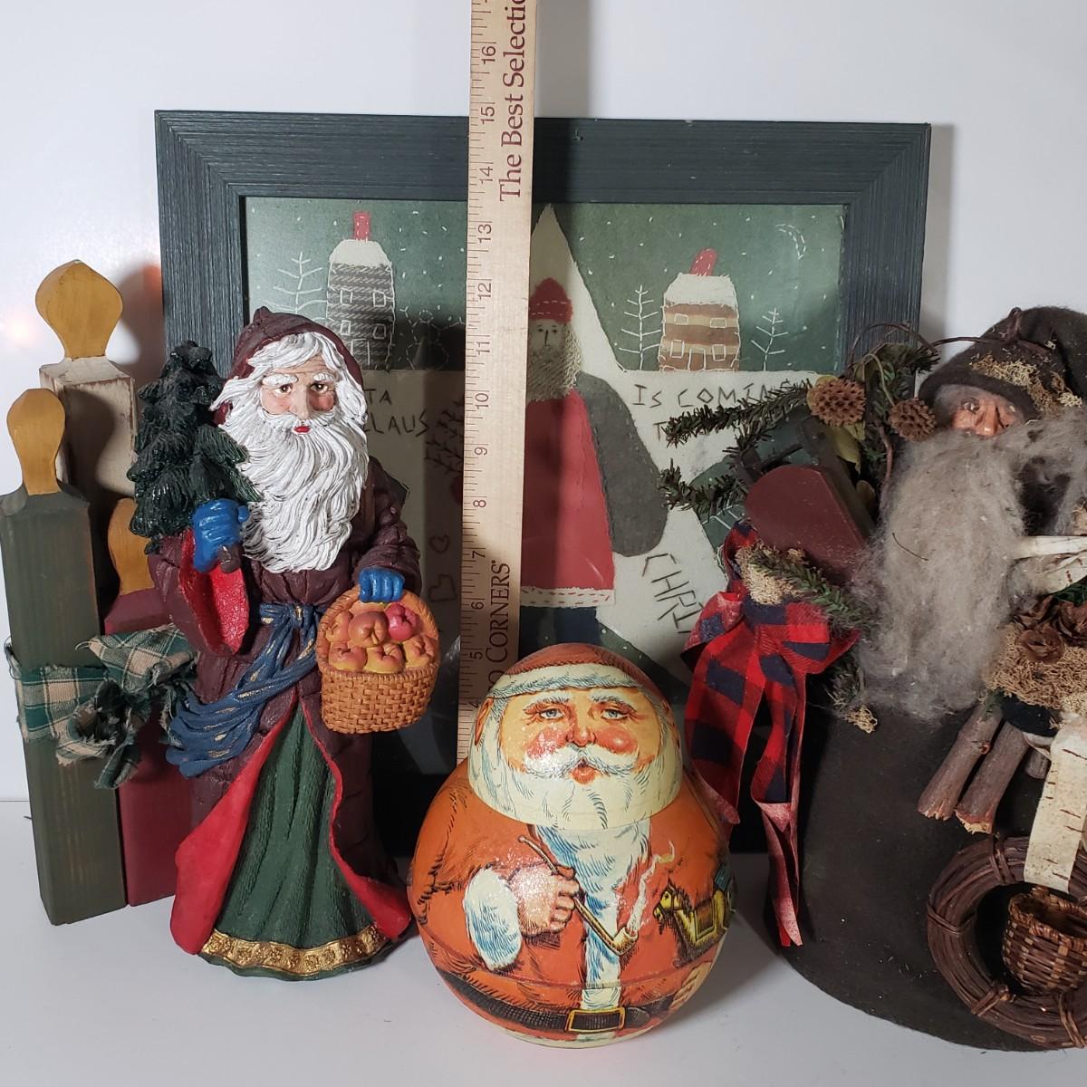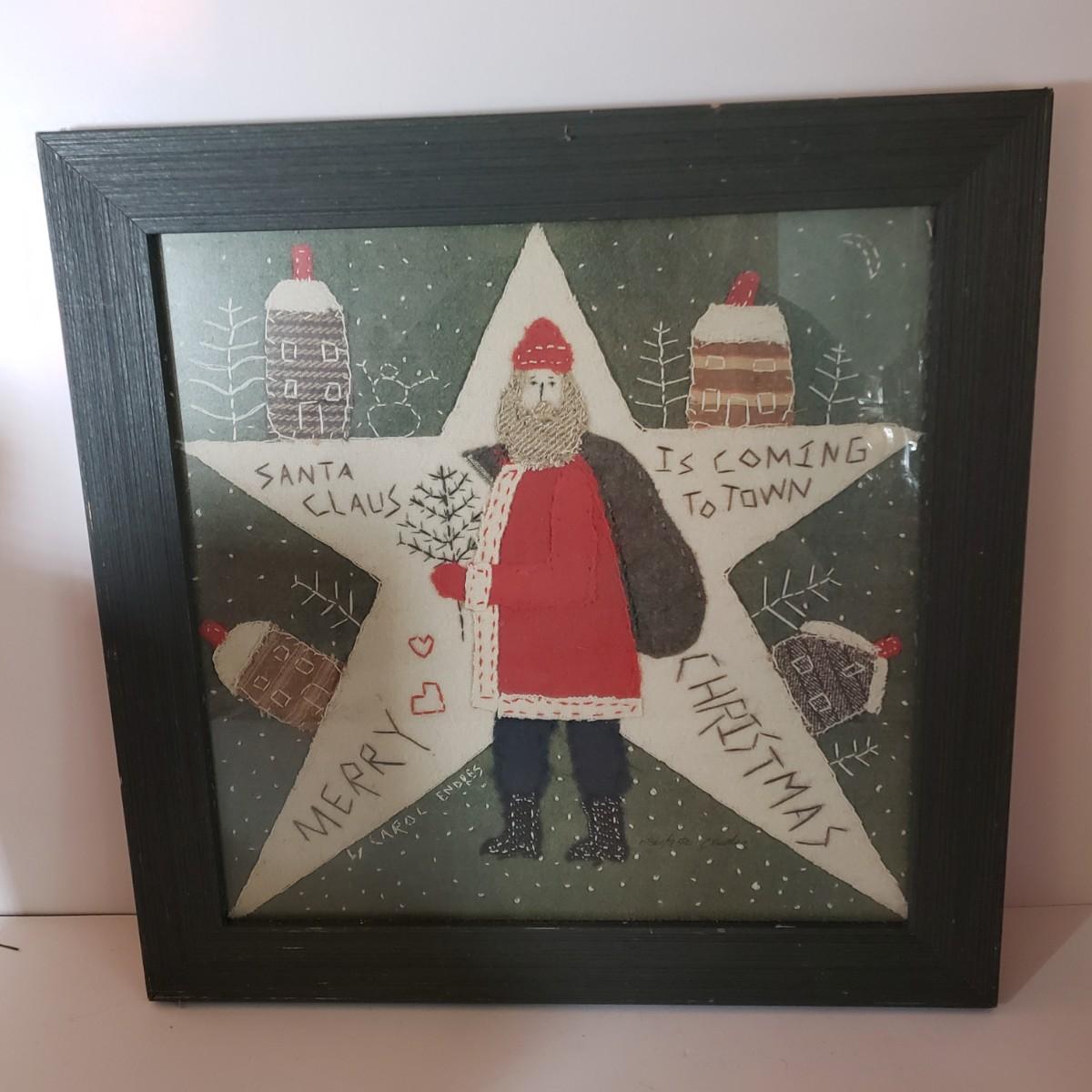 LOT 173F: Framed Art by Carol J Endres with Collection of Santas