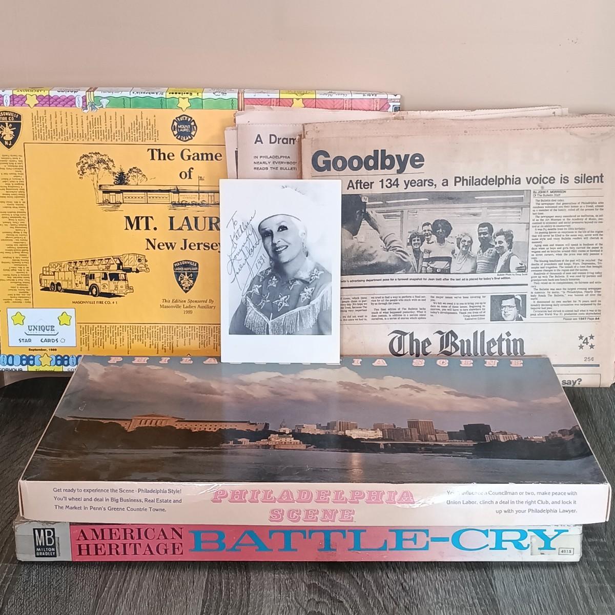 LOT 173L: Signed Photograph of Sally Starr, Mt Laurel Board Game 1989, Philadelphia Board Game 1980 & More