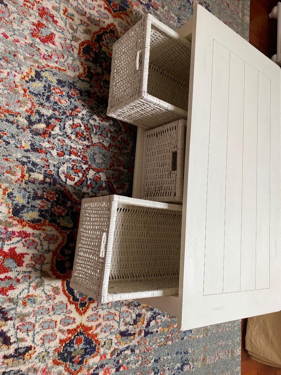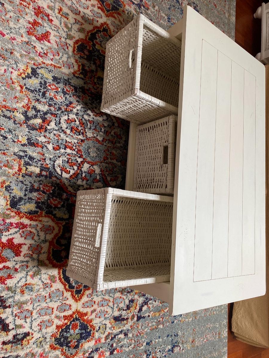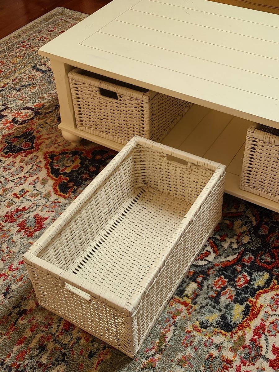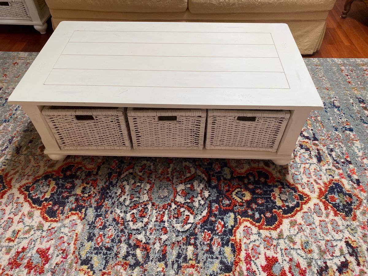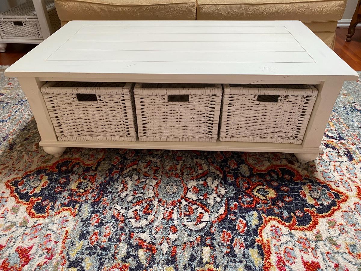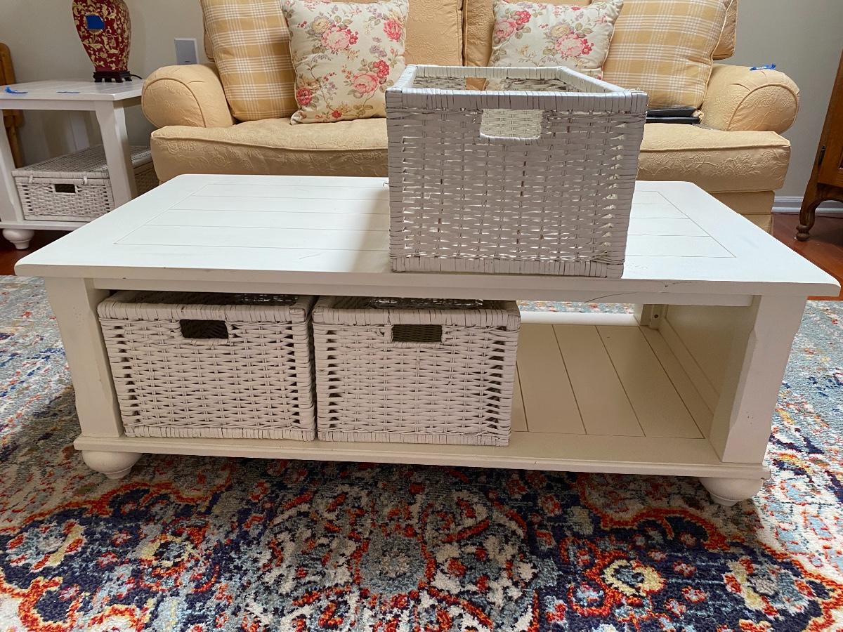 Lot 174: Shabby Chic/Farmhouse Design White Coffee Table with Basket Storage
