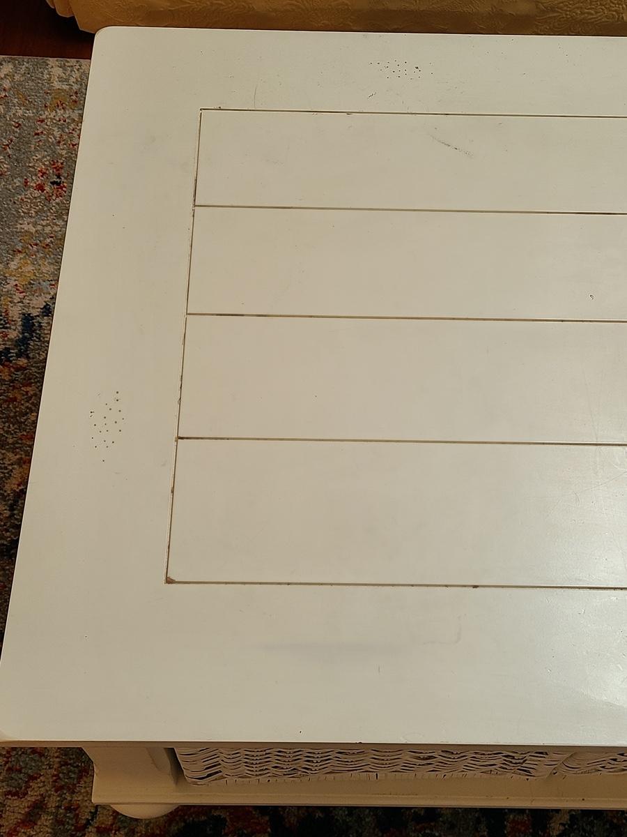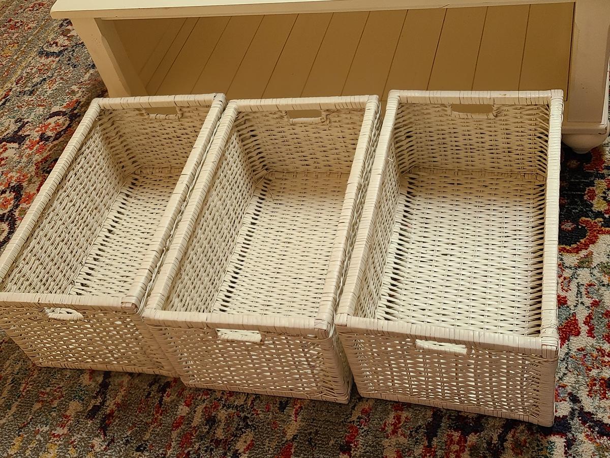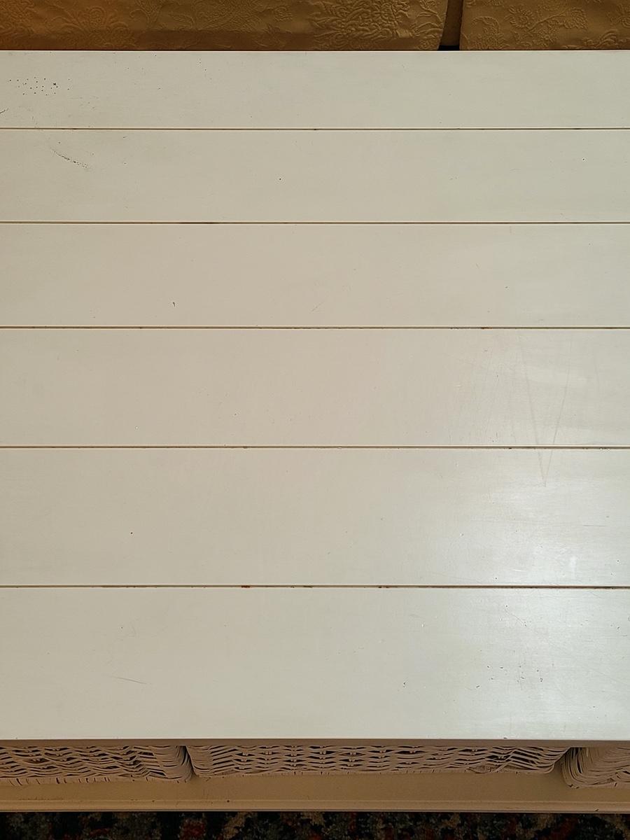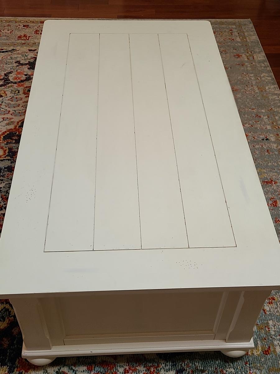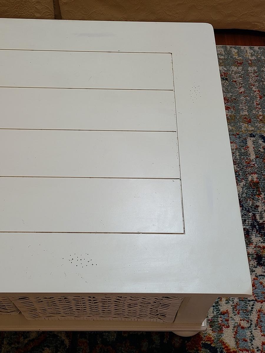 Lot 174: Shabby Chic/Farmhouse Design White Coffee Table with Basket Storage