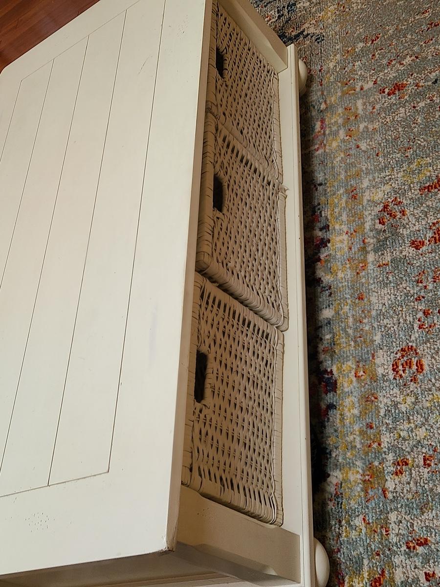 50x27x18 inches tall. Perfect for any room in the house, comes with basket storage and can be used with or without! 32x18x82. Please see all pictures as they are the best representation of the items in the lot, the condition of the lot, and will show measurements if taken. If purchasing furniture you must be able to move yourself with your own help, and truck. .