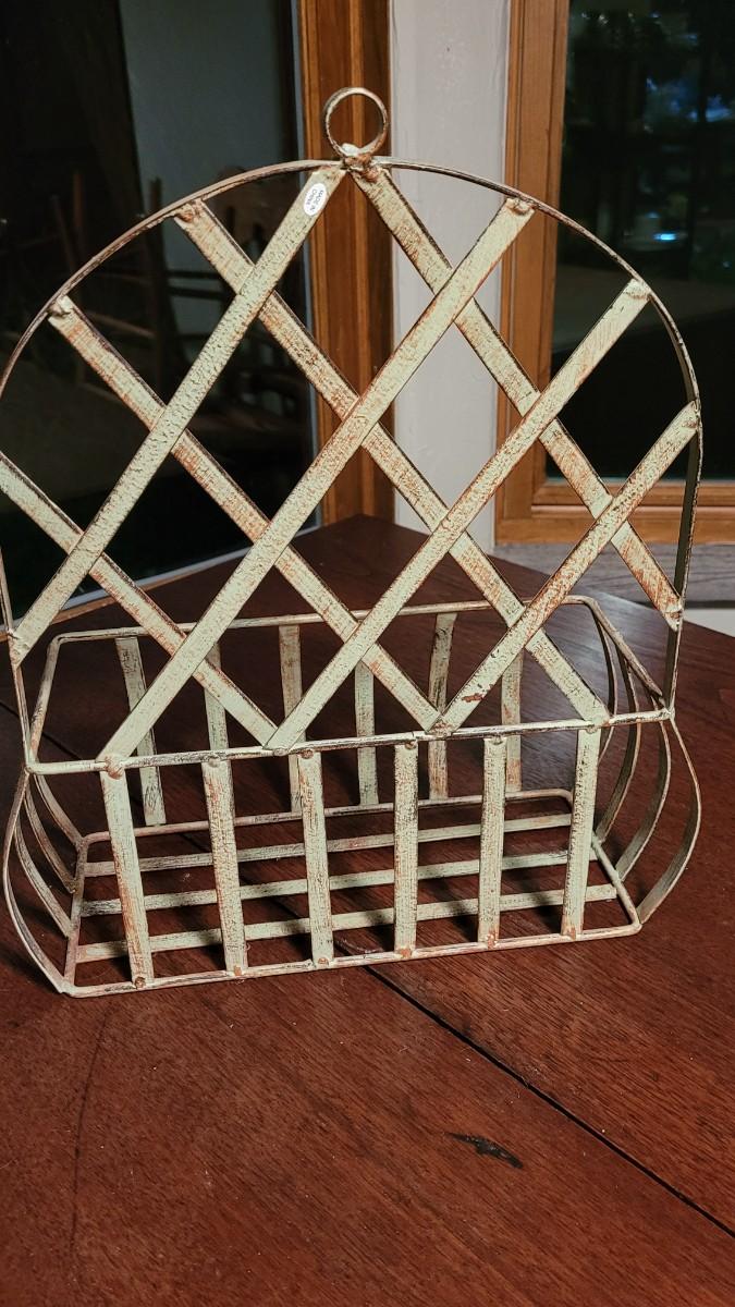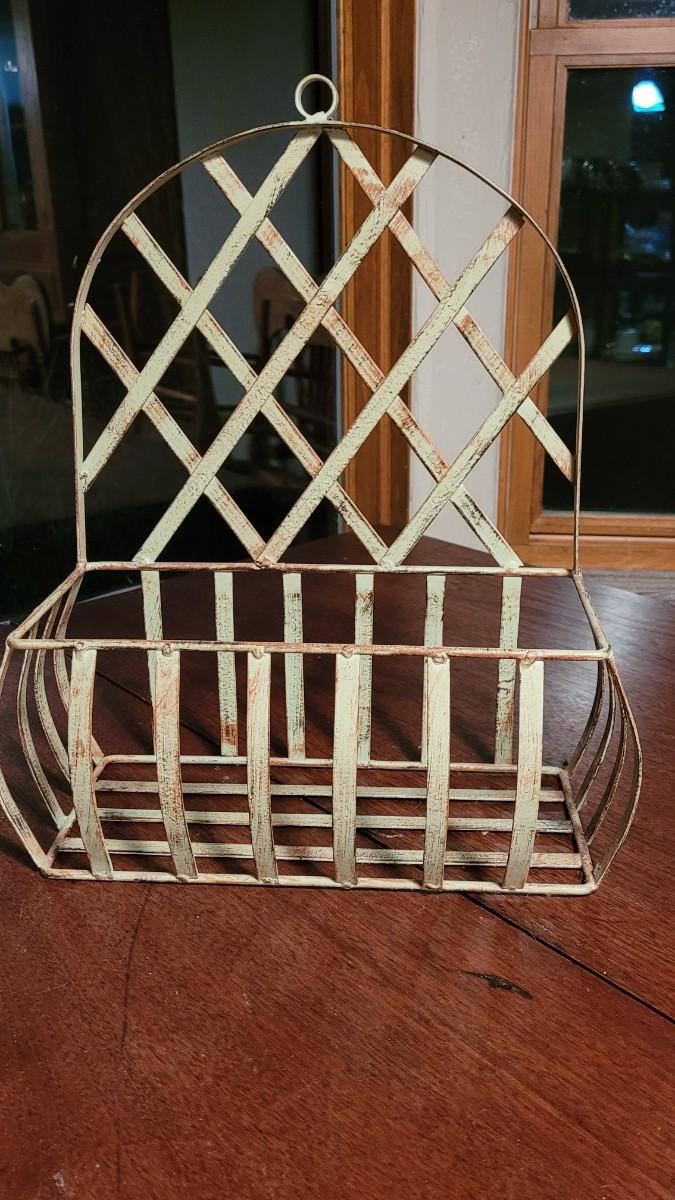 Lot 174: Mint Green & Rust Hanging or Counter top Metal Basket