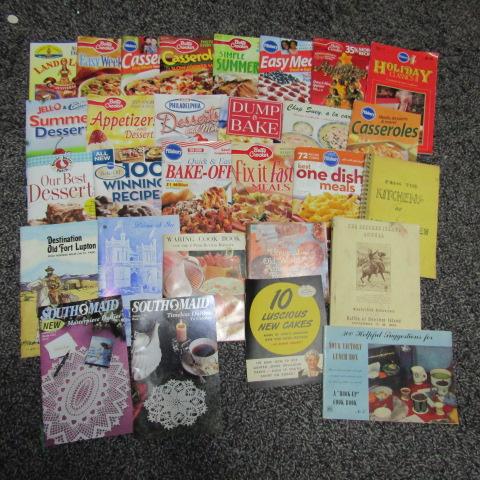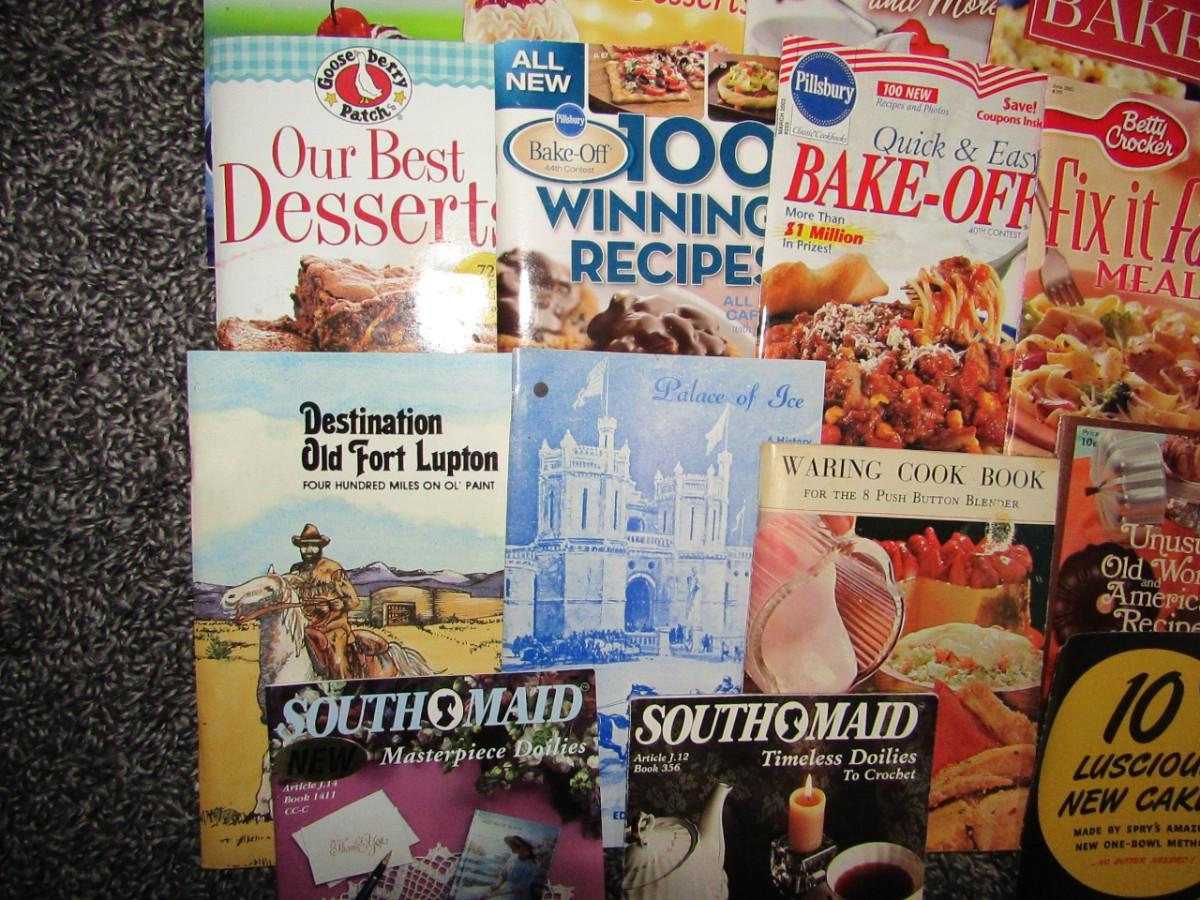 WIDE VARIETY OF PAMPHLETS ON COOKING, BAKING, MAKING DOILIES AND A FEW OTHER SUBJECTS