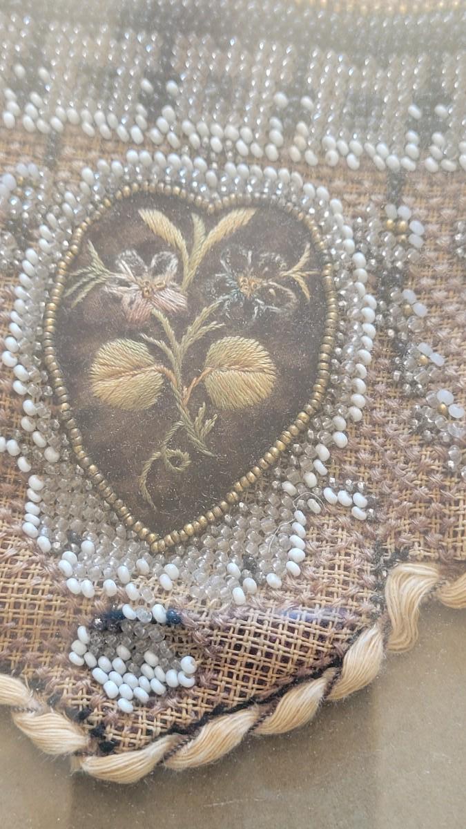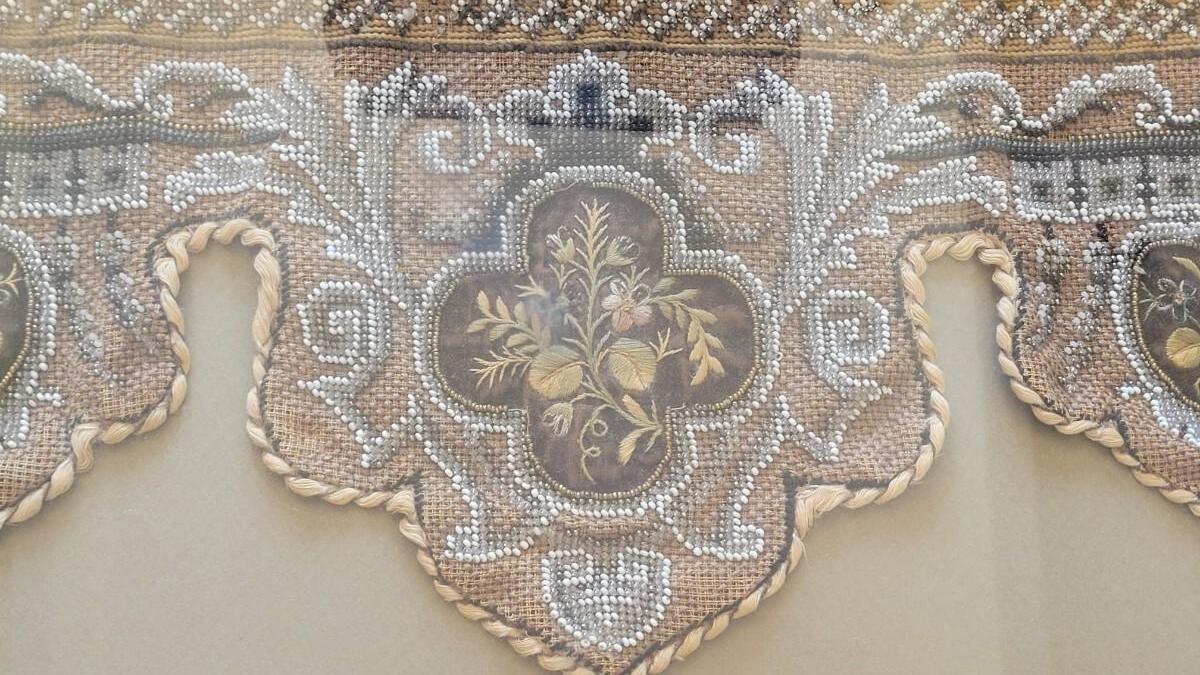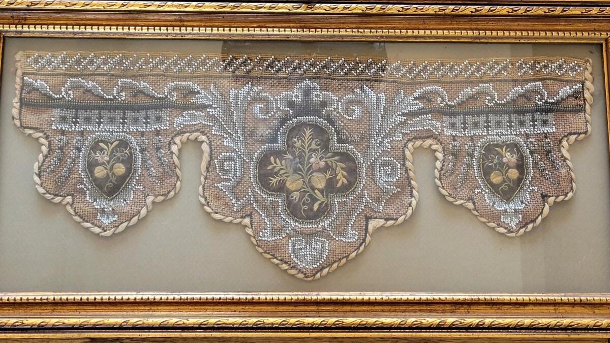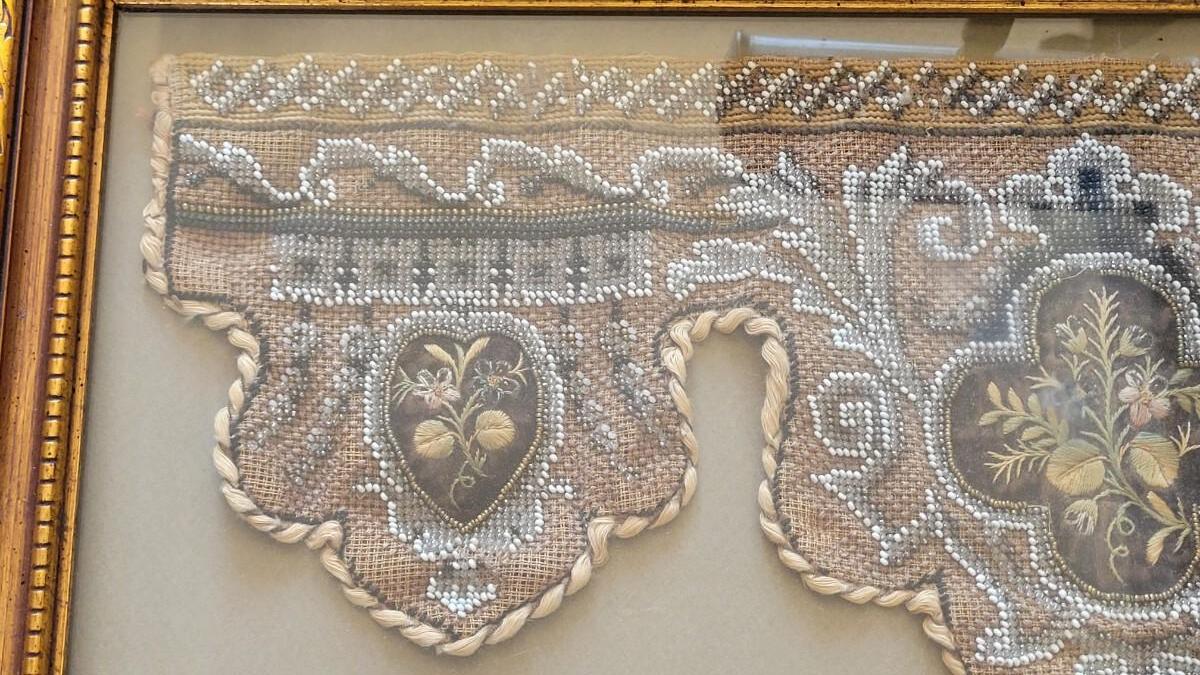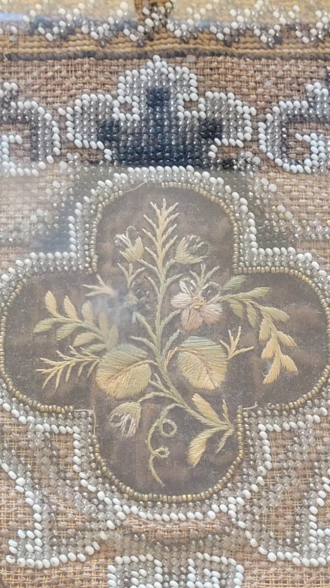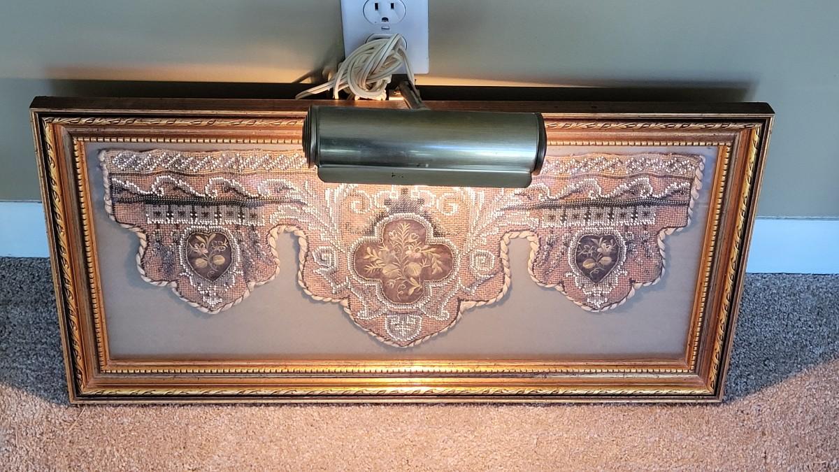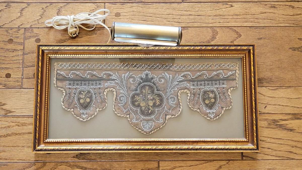 This beautiful antique beadwork is framed and illuminated by it's own attaches lighting.