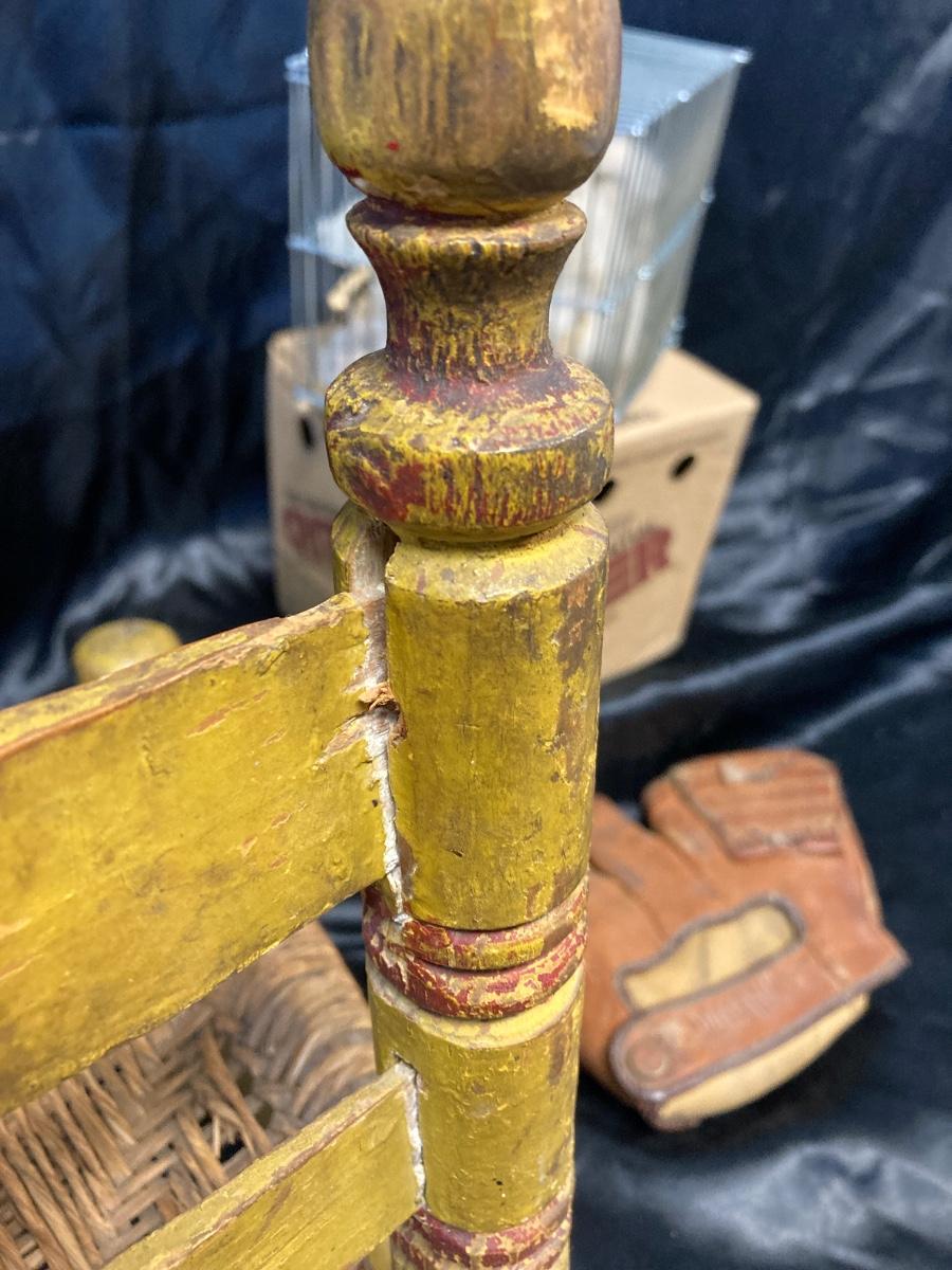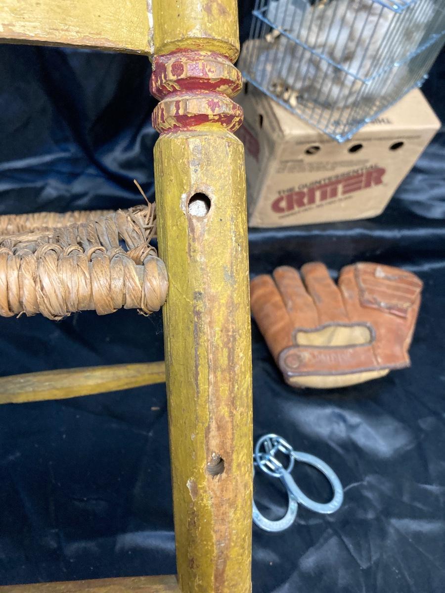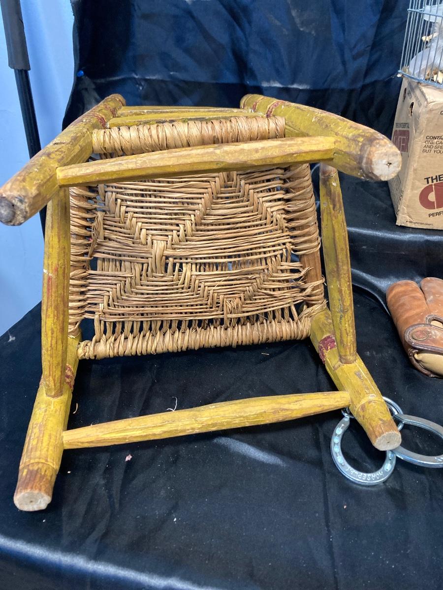 THE CHILD SIZED BASE BALL GLOVE IS AN ADORABLE LITTLE SMALL THING. THIS CUTE LITTLE CHAIR IS IN NEED OF SOME TLC BUT DEFINITELY COOL AND WORTH IT!