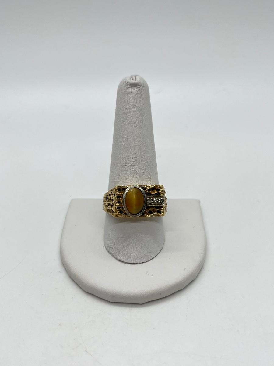 LOT 174: 10K Gold Star Sapphire + Diamond Size 10.5 Ring - 8.9 gtw