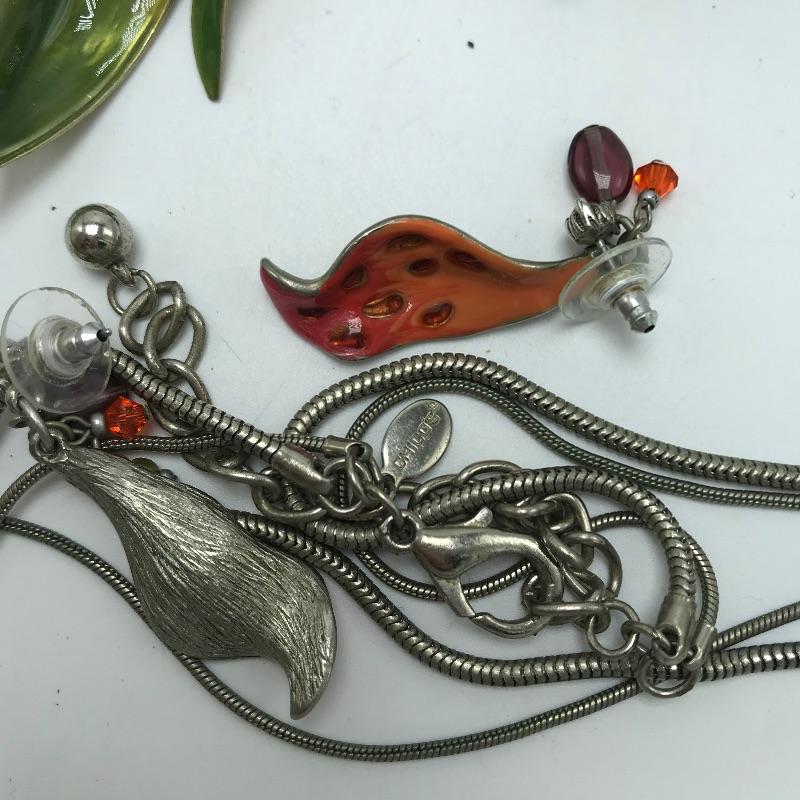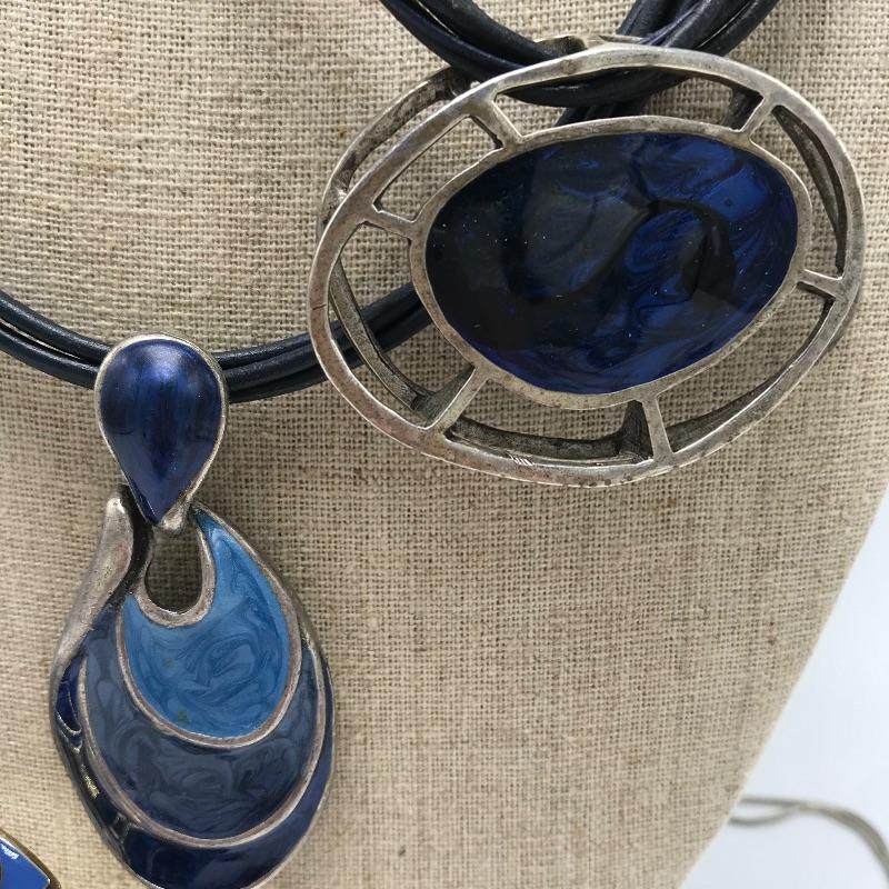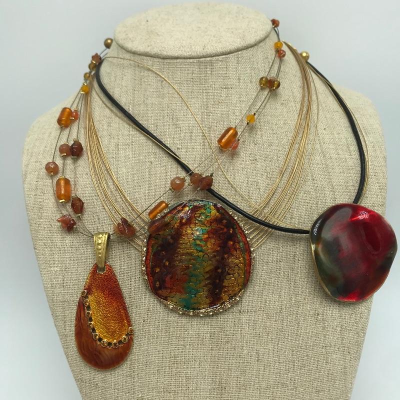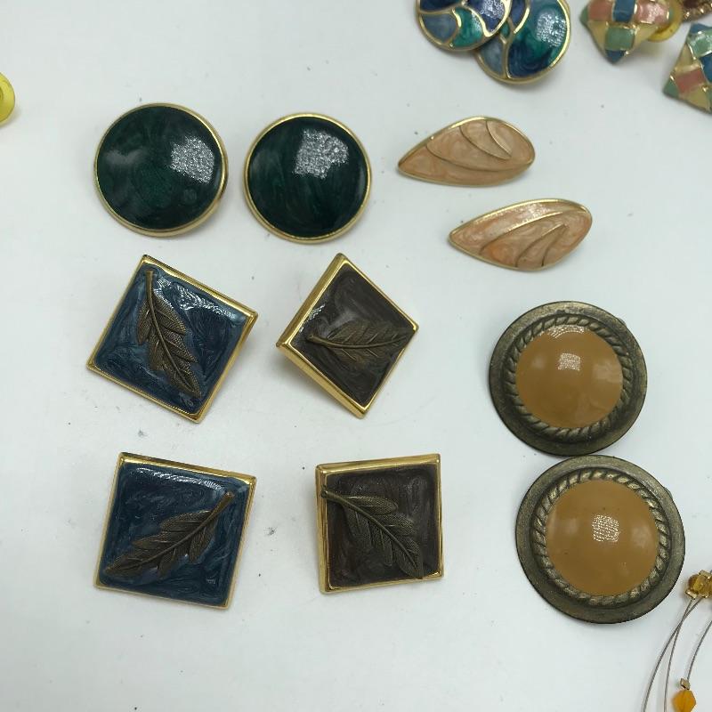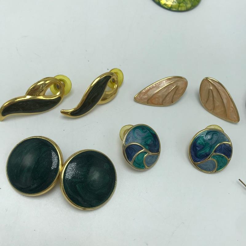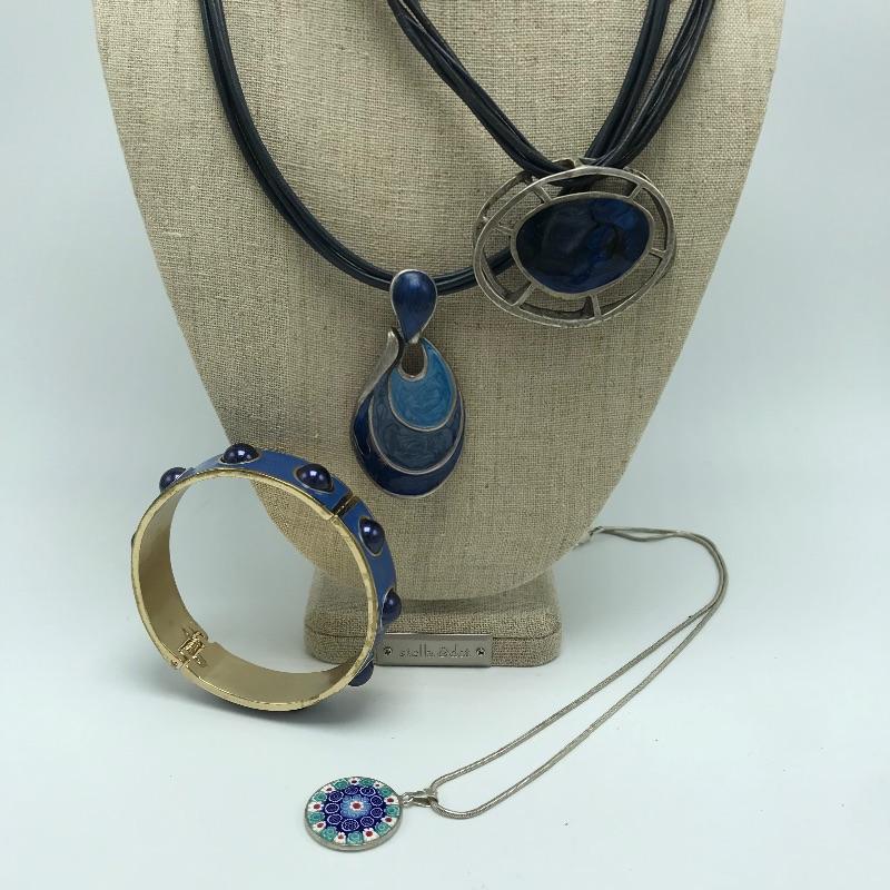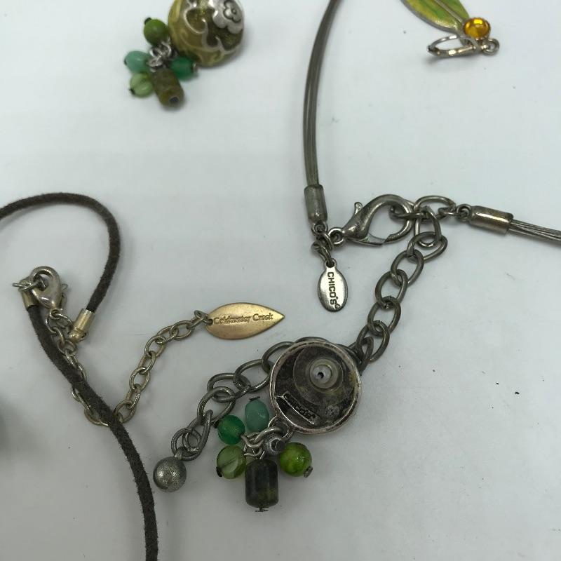 Sweet bold collection from places like Chico’s, Talbots and more. Large painted-like pendants and other statement pieces. Some pieces appear like enamel, some have swirled paint like features and others are more traditional styles. The green and yellow bracelet is stretch style while the other two bracelets are hinged.
