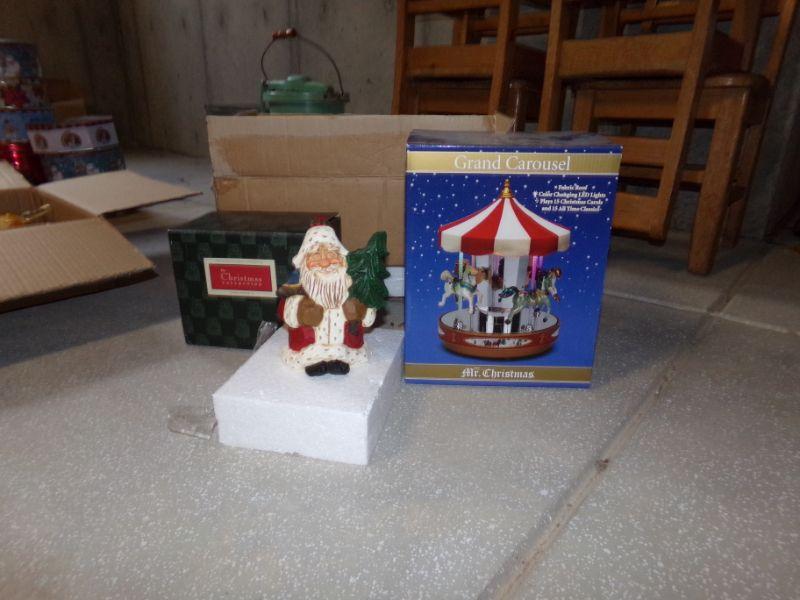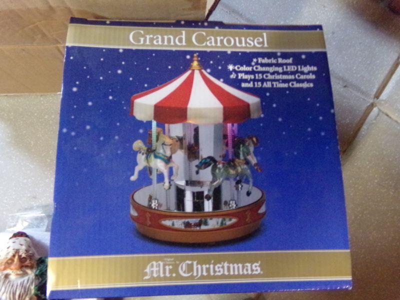 GRAND CAROUSEL MUSIC BOX (NIB), COLLECTIBLE SANTA (NIB)