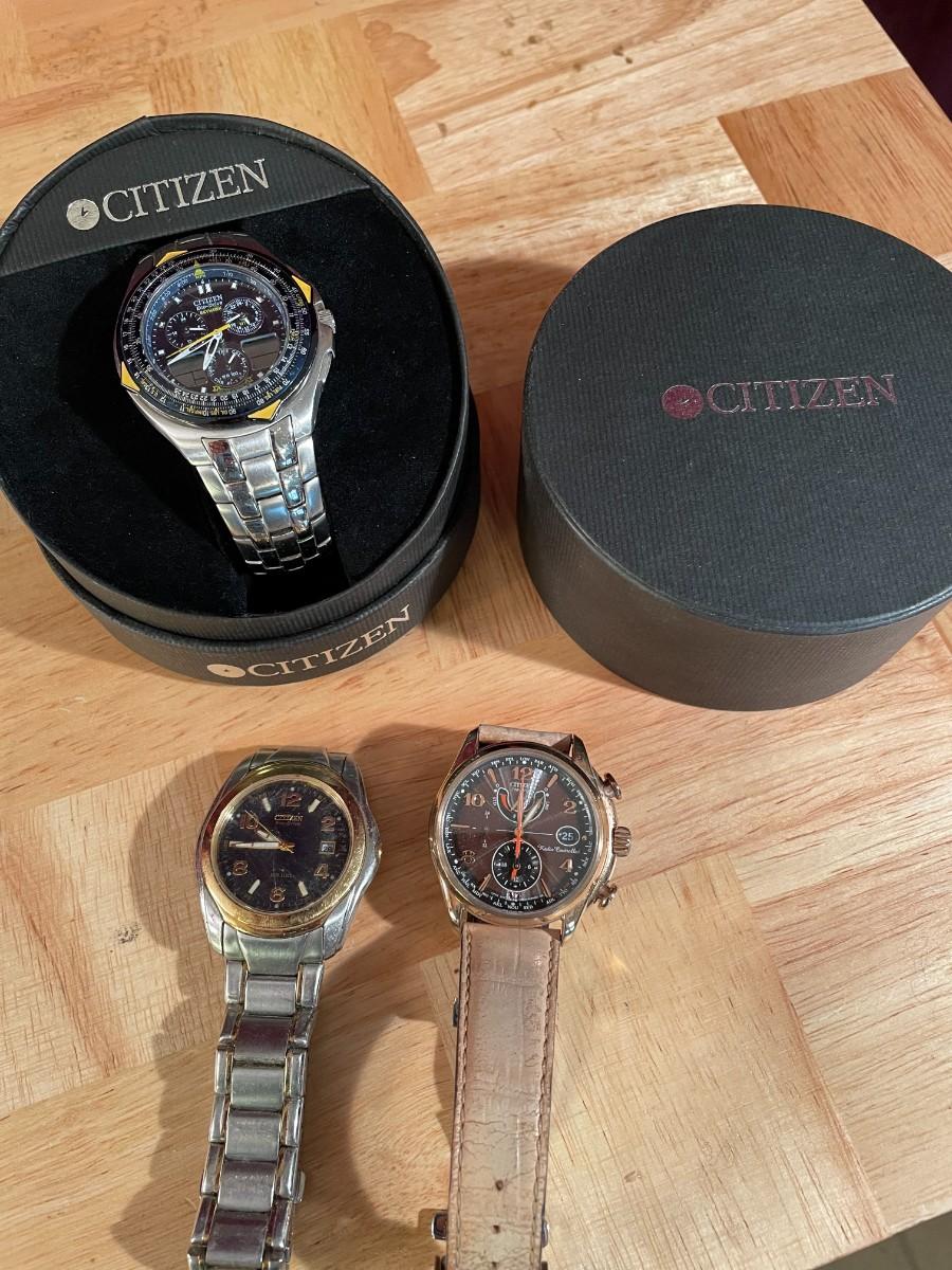 1- Men's Eco-Drive SkyHawk, 1- Eco-Drive WR 100, 1- Eco-Drive Radio Controlled
